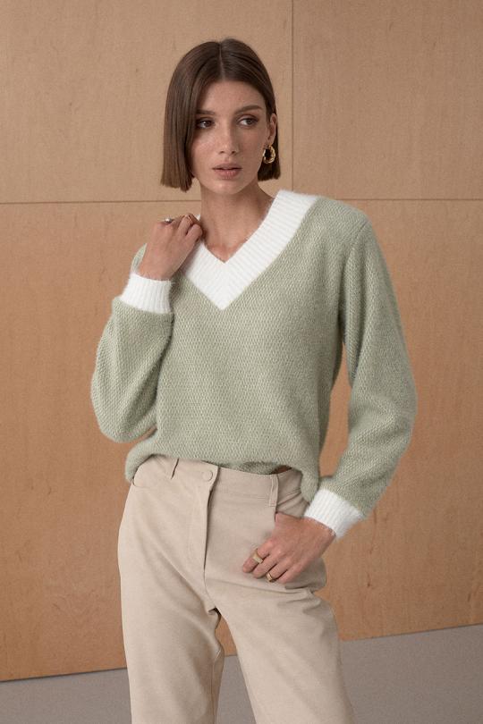 Размеры сдвоенные: 42-44, 46-48. Тренд сезона! Джемпер из приятного мягкого трикотажного полотна. Джемпер имеет пушистую фактуру. Усиленная и расширеная линия плеча.