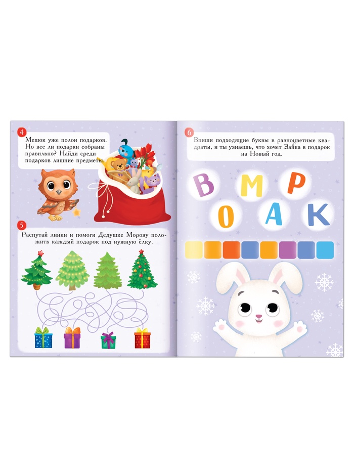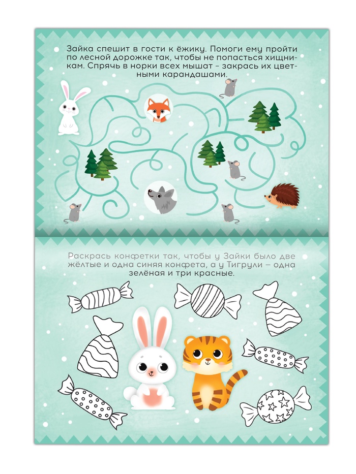 * В активити-книге, новогодних заданиях и раскраске малыш найдёт много интересных сюжетов и увлекательных задачек.