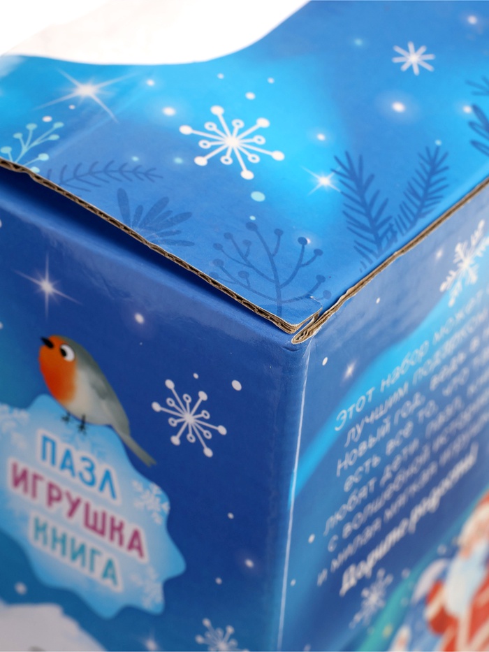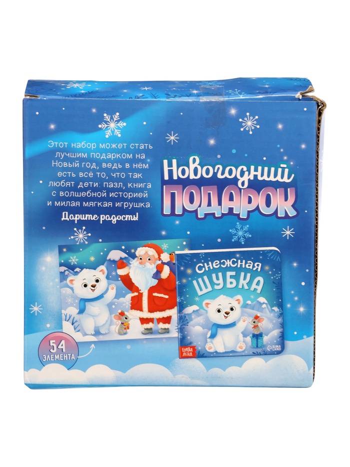Подарочный набор «Новогодний мишка» — это тройной сюрприз для детей от 5 лет, который включает мягкую игрушку, книгу и пазл. Упакованный в картонную коробку, этот комплект станет идеальным подарком на Новый год или любой другой праздник.