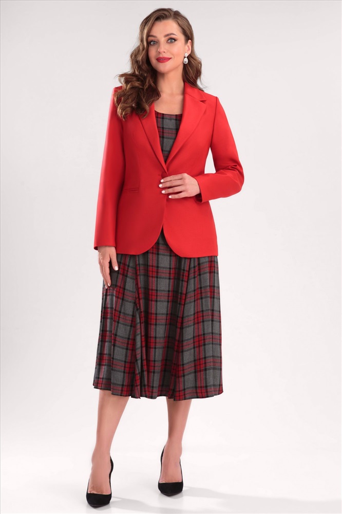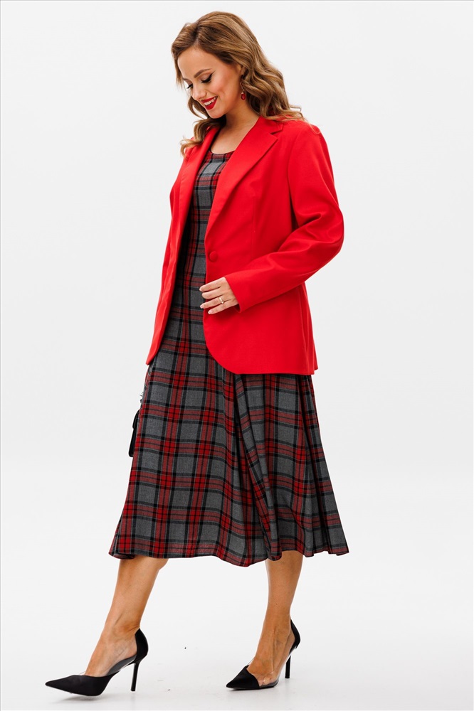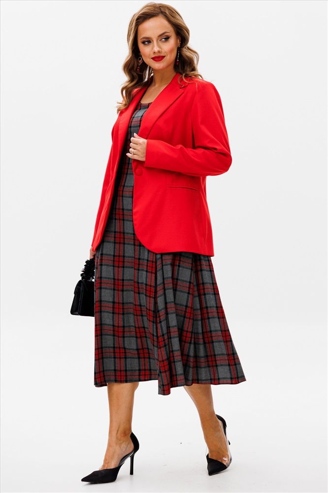 Страна производитель: Республика Беларусь Комплектация: Жакет, Платье Сезон: Демисезон Коллекция: Осень-Зима, Осень 2024 Стиль: На каждый день Цвет: красный, мультиколор Материал: текстиль Состав: Состав платья- вискоза 100%Состав жакета- полиэстер - 64%, вискоза - 33%, спандекс - 3%. Рост: 164 см Адрес изготовителя: г. Брест, ул. М. Богдановича, 50 Описание: Изысканный женский костюм, идеально подходящий для современных леди. Элегантное сочетание красного жакета и платья в клетку создает стильный образ, подчеркивающий утонченность и уверенность. Яркий красный жакет с классическим кроем и плавными линиями гармонично дополняет платье средней длины с модным клетчатым узором, делая его универсальным выбором как для деловых встреч, так и для вечерних мероприятий. Комплект женский состоит из двух предметов: жакета полуприлегающего силуэта и платья силуэта “песочные часы”. Костюм предназначен для повседневной носки. Комментарии к товару