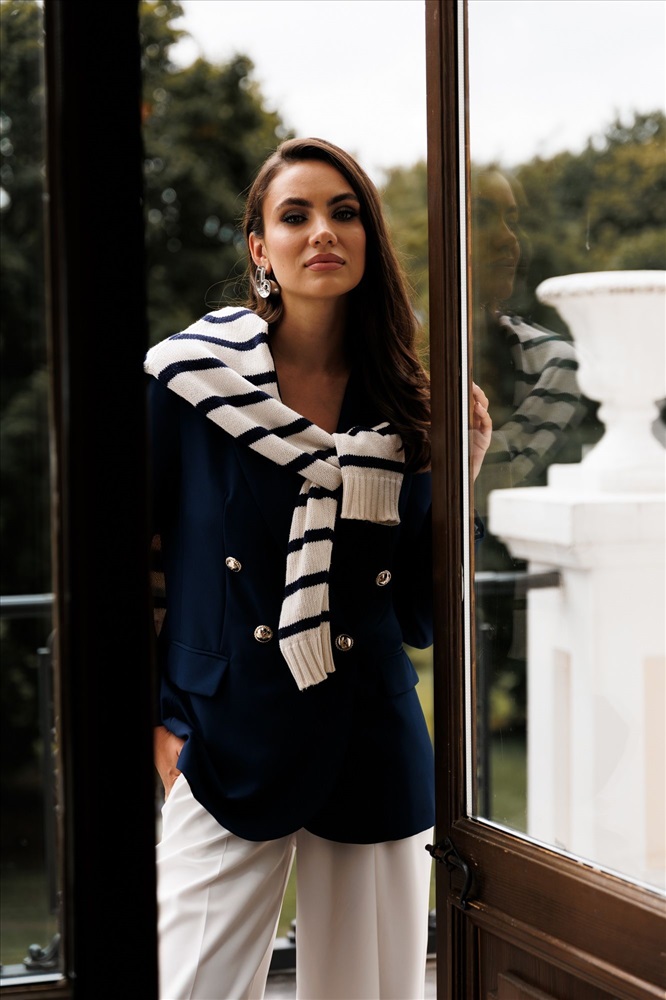 Страна производитель: Республика Беларусь Комплектация: Жакет Сезон: Демисезон Коллекция: Осень-Зима Стиль: На каждый день Цвет: синий Материал: текстиль Состав: изделия- Полиэстер - 55%, шерсть - 45% Состав подкладки- Полиэстер - 55%, вискоза - 45% Рост: 164 см Адрес изготовителя: г. Брест, ул. М. Богдановича, 50 Описание: Этот элегантный шерстяной жакет выполнен в классическом темно-синем цвете и подчеркивает строгость и безупречный вкус. Двубортный фасон с блестящими металлическими пуговицами добавляет образу утонченности, сохраняя при этом деловую эстетику. Приталенный крой выгодно подчеркивает силуэт, создавая идеальный баланс между комфортом и элегантностью. Этот жакет прекрасно подойдет для офисных встреч, светских мероприятий или деловых поездок, добавляя уверенности и изысканности любому наряду. Жакет женский, свободного полуприлегающего силуэта, выполнен из костюмной полушерстяной ткани, на притачной подкладке, с двубортной застежкой на 2 петли и 4 пуговицы (размер и цвет фурнитуры может незначительно отличаться от фото). Жакет может быть как для нарядной, так и для повседневной носки. Комментарии к товару