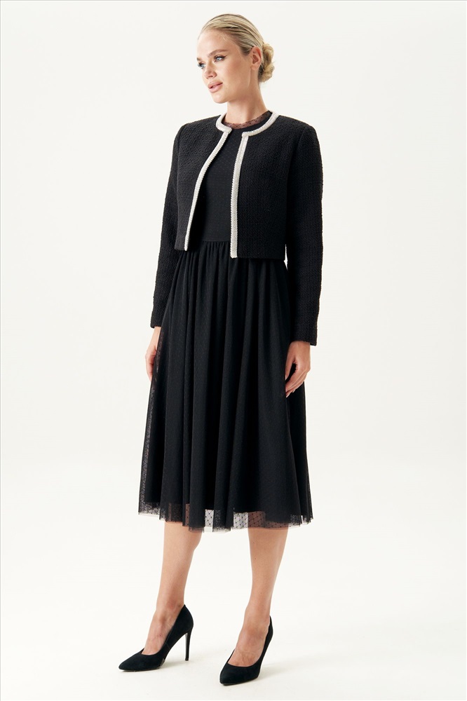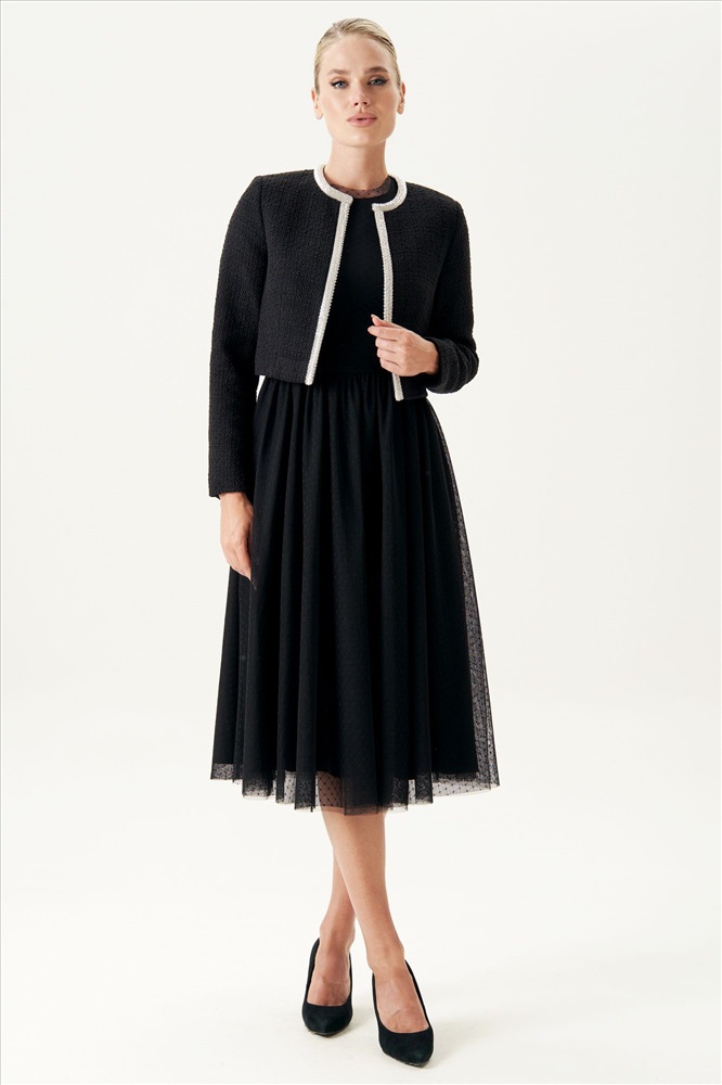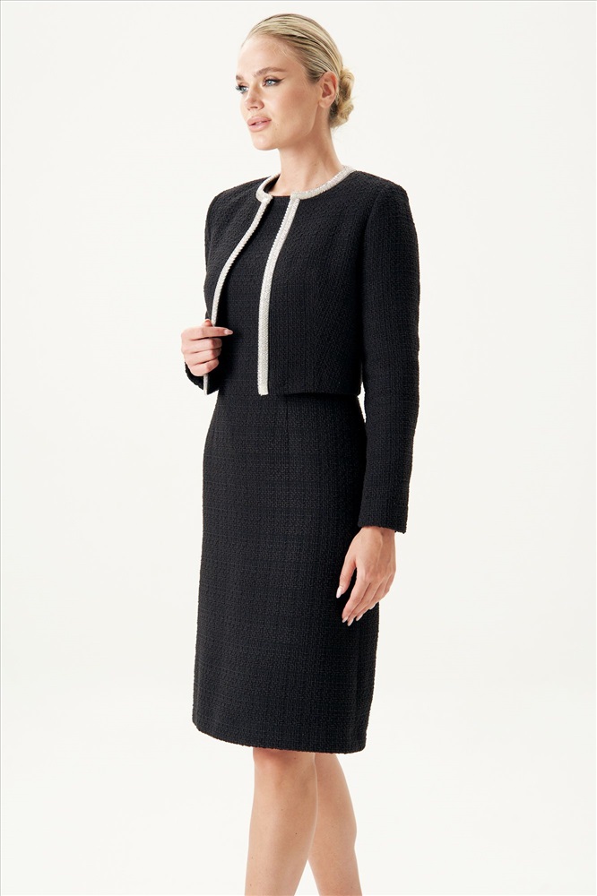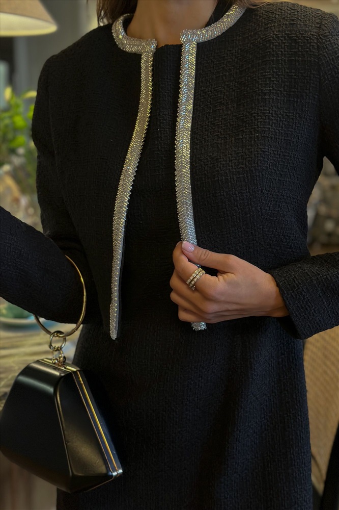 Страна производитель: Республика Беларусь Комплектация: Жакет Сезон: Демисезон Коллекция: Осень-Зима Стиль: На каждый день Цвет: черный Материал: текстиль, твид Состав: Состав изделия- полиэстер - 54%, хлопок - 34%, вискоза 12%. Состав подкладки- полиэстер - 55%, вискоза - 45%. Рост: 164 см Адрес изготовителя: г. Брест, ул. М. Богдановича, 50 Описание: Этот изысканный твидовый жакет станет идеальным акцентом для создания элегантного и женственного образа. Выполненный в классическом черном цвете с фактурной тканью, он дополнен утонченной серебристой отделкой, которая подчеркивает его изысканный стиль. Минималистичный крой с округлым вырезом и укороченная длина делают его универсальным дополнением как к вечернему платью, так и к повседневному ансамблю. Этот жакет подчеркивает тонкий вкус и добавляет нотку роскоши вашему гардеробу. Носите его с элегантными лодочками и минималистичными аксессуарами для завершения образа. Комментарии к товару