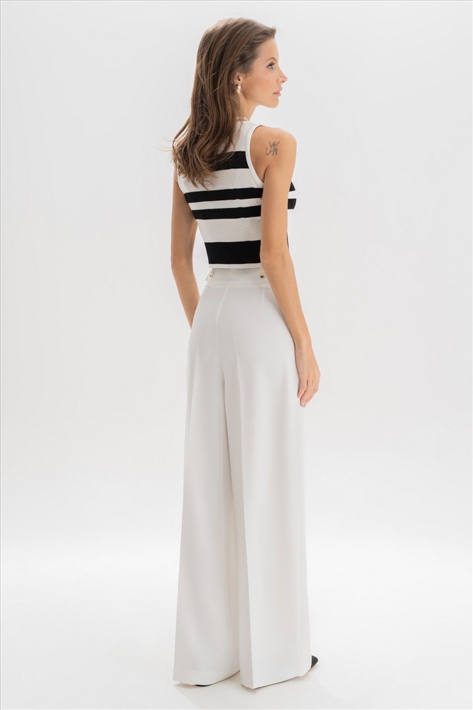 Страна производитель: Республика Беларусь Комплектация: Брюки Сезон: Лето Коллекция: Лето, Лето 2025 Стиль: Деловой, На каждый день Цвет: белый Материал: текстиль Состав: полиэстер - 80%, вискоза - 11%, спандекс - 9% Рост: 164 см Адрес изготовителя: г. Брест, ул. М. Богдановича, 50 Описание: Эта модель рассчитана на девушек с ростом 176–182 см, позволяя создать элегантный, вытянутый силуэт. Идеальные белые брюки — основа капсульного гардероба. Модель выполнена в прямом крое, визуально вытягивающем силуэт и придающем образу легкость. Аккуратные стрелки, лаконичные складки от пояса и деликатные вытачки формируют безупречную посадку. Пояс с регулируемыми патами обеспечивает комфортную посадку на талии, а универсальный цвет легко сочетается как с базовыми топами, так и с яркими акцентами. Брюки женские, прямые, выполнены из костюмно-плательной ткани. Передние и частично задние половинки брюк, с отрезным поясом, задние половинки брюк от вытачки до бокового шва с цельнокроеным поясом, с застёжкой на тесьму - «молнию», расположенную в среднем шве передних половинок. Пояс застегивается спереди на один пришивной крючок и 1 петлю и 1 потайную пуговицу. Для регулировки пояса по талии в боковых швах обработаны паты, застегивающиеся на 1 петлю и 2 пуговицы. Передние половинки брюк с боковыми наклонными карманами, частично застроченными от пояса вниз на 3,0 см, с двумя парами односторонних складок от пояса, и 2-мя шлевками. Задние половинки брюк с талиевыми вытачками. Передние и задние половинки брюк с заутюженными стрелками. Состав ткани: полиэстер - 80%, вискоза - 11%, спандекс - 9%. Комментарии к товару