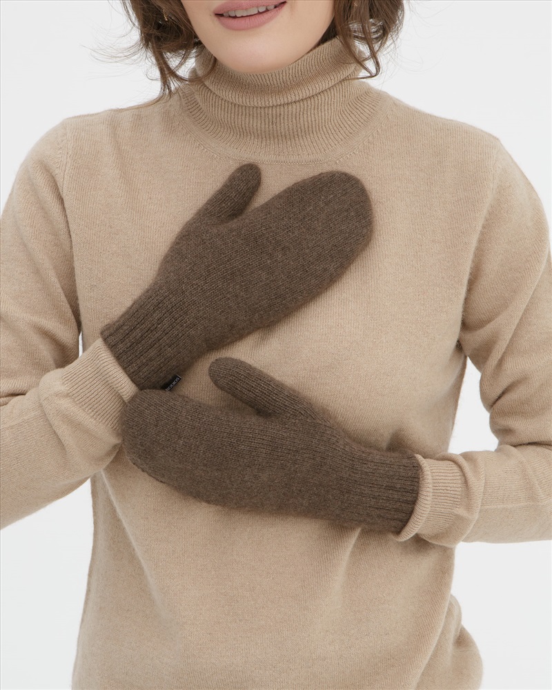 Состав: 100% пух яка Размер на модели: Универсальный Тёплые варежки из натурального пуха яка в мягком коричневом оттенке — идеальный аксессуар для холодной зимы. Благодаря природным свойствам пуха яка варежки отличаются исключительной мягкостью, лёгкостью и способностью удерживать тепло даже в сильные морозы. Эластичные манжеты обеспечивают плотное прилегание, защищая от ветра и снега. Лаконичный дизайн делает их универсальным дополнением к зимнему гардеробу, легко сочетающимся с пальто, пуховиками и шерстяными шарфами. Комментарии к товару