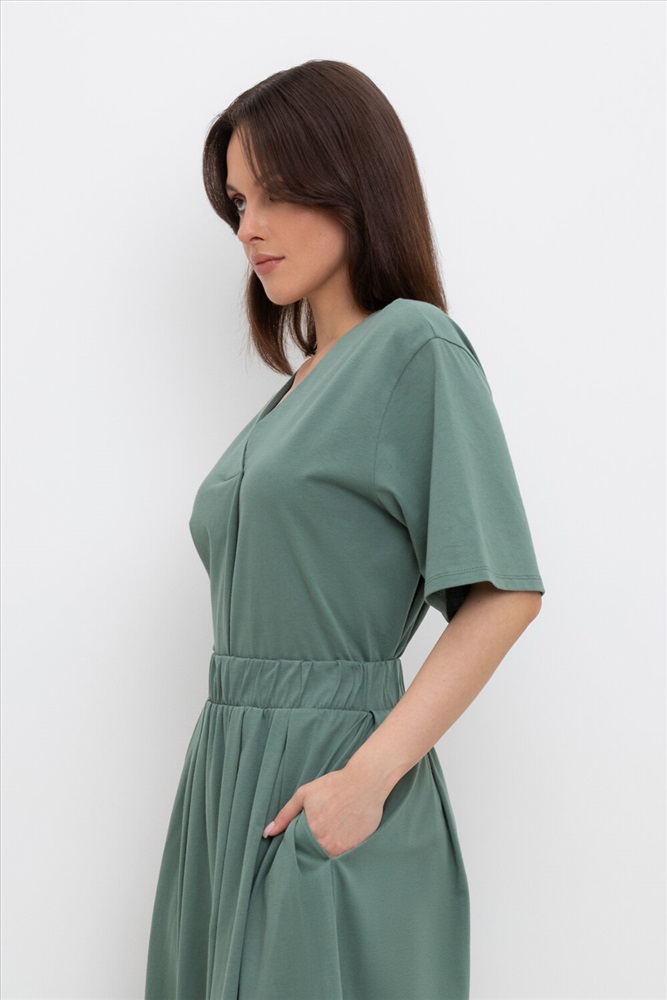 Российский размер: 42 Обхват груди: 84 Обхват талии: 66 Обхват бедер: 90 Артикул поставщика: ЕВТ 3266 Ткань: Супрем Состав: 100% хлопок Сезон: Весна, Лето Год: 2024 Страна: Россия Рост: 164-170 Легкая свободная блуза с короткими рукавами из длинноволокнистого гребенного хлопка. По полочке декоративная складка с эффектом запаха. Все трикотажные полотна производятся в соответствии с нормами Швейцарского сертификата ЭкоТекс. Сделано в России - 100% хлопок - гипоаллергенные красители Комментарии к товару