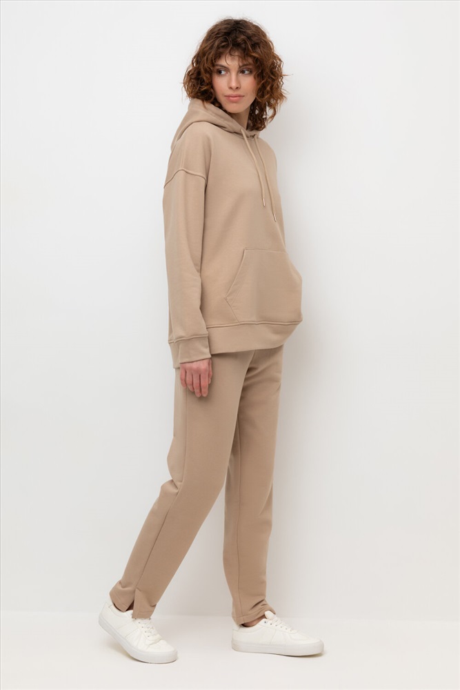 Брюки прямого кроя с боковыми карманами из петельчатого футера трехнитки. Гладкий и плотный материал на основе хлопка сохраняет форму.