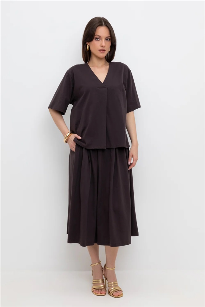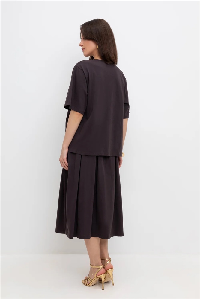 Юбка миди из длинноволокнистого гребенного хлопка с широкими мягкими складками и боковыми карманами.