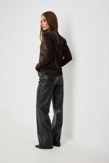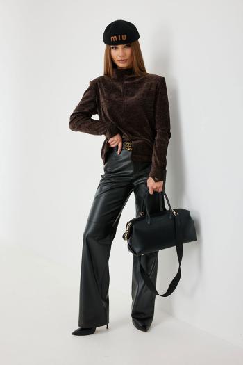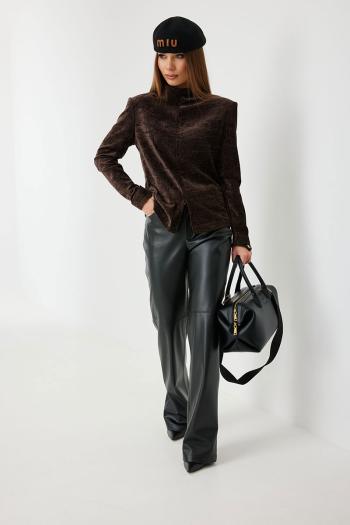 Джемпер полуприлегающего силуэта с цельнокроеной стойкой и плечевыми накладками. Втачной рукав полной длины, зауженный к фигурному низу.По переду оформлен разрез в шве. По спинке декоративная застежка-молния золотистого цвета.