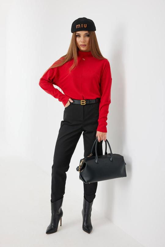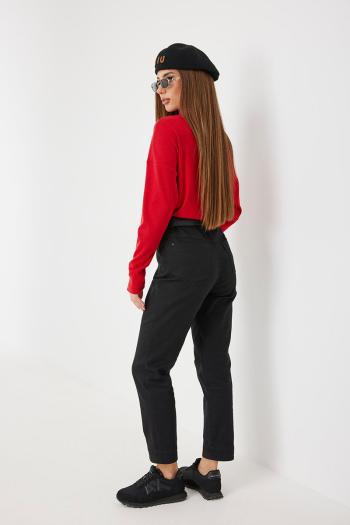 накладные карманы. Внутренний пояс и отвороты по низу брюк красного цвета.