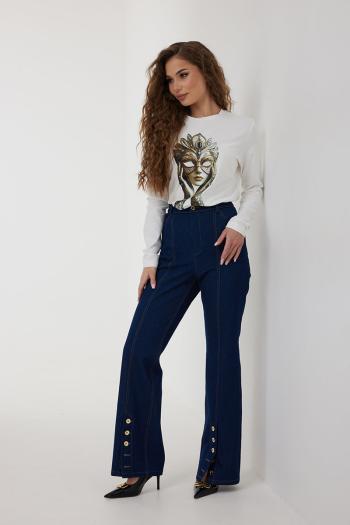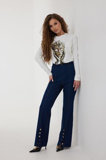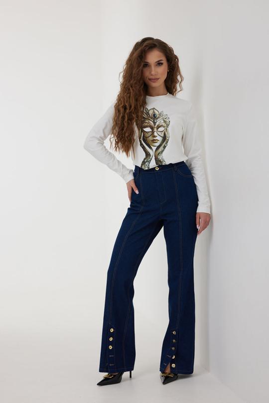 Джемпер прямого силуэта из трикотажного полотна. Горловина круглой формы. Рукав прямой удлинённый с отверстием для большого пальца. На переде выполнена печать.
