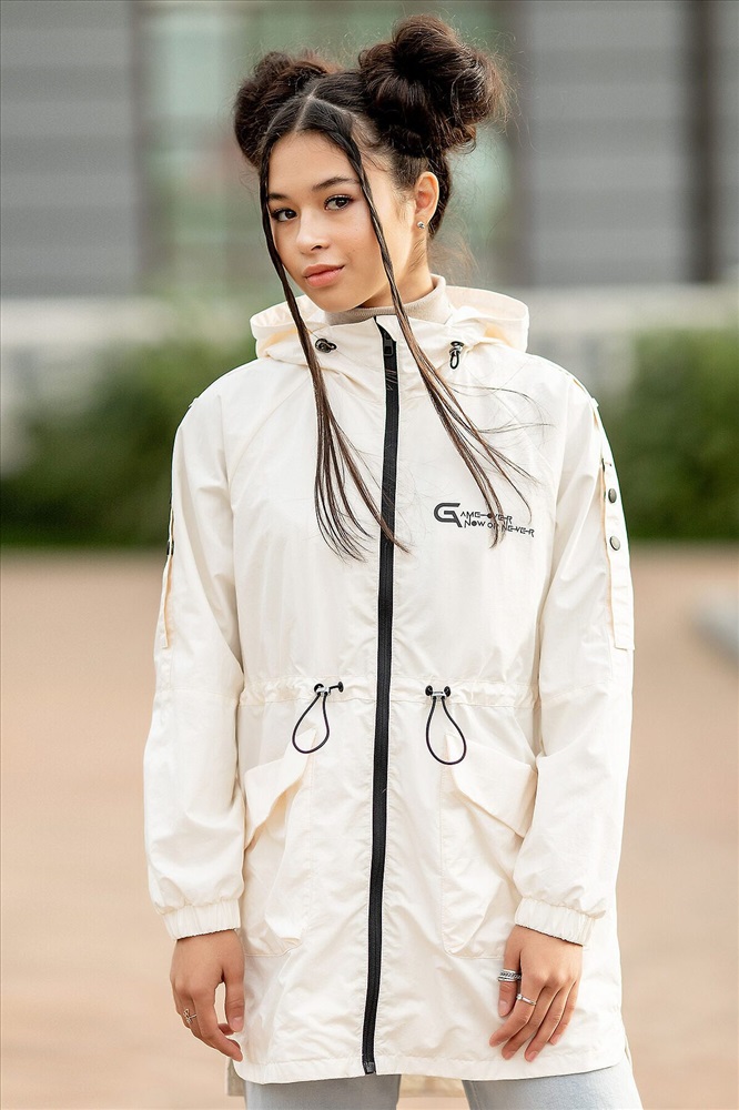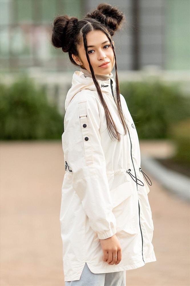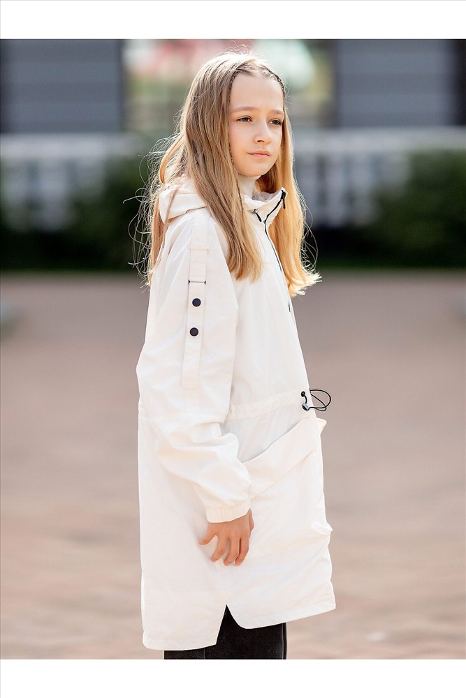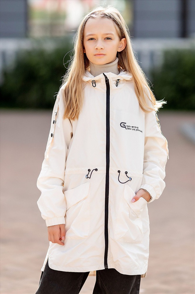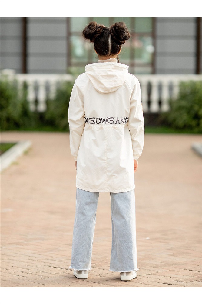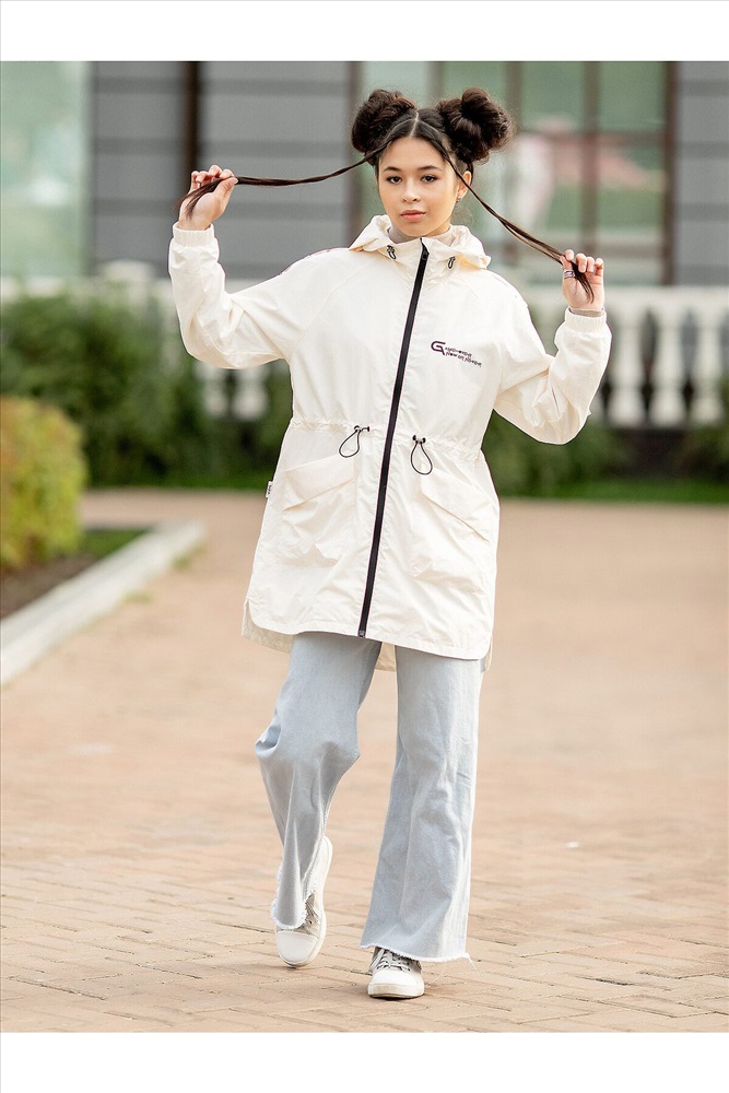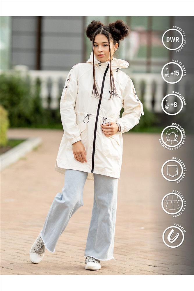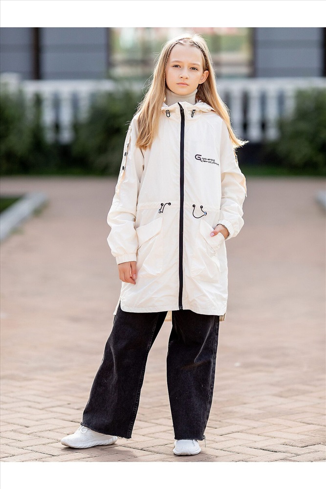 ID товара: 1035375 Сезон: Демисезон Длина: Удлиненная Фасон: Свободный Рукав: длинные Вид застежки: Молния Рисунок: Надпись Тип карманов: Накладные Декоративные элементы: С капюшоном Утеплитель: без утеплителя Стиль: повседневный Реком. темп. режим: до +15ºС Страна бренда: Россия Страна производства: Россия Ветровка-пыльник для девочки Джун из коллекции Весна-2023 с капюшоном в расцветке шампань представляет собой демисезонную удлиненную парку из курточной ткани с водоотталкивающей пропиткой. Застегивается на центральную молнию с защитой подбородка на воротнике. На груди небольшая надпись. Слегка удлиненная спинка, разрезы по бокам. Особенности: