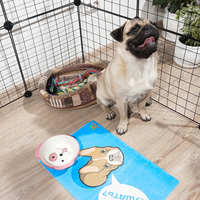 Полезные советы: позаботьтесь о том, чтобы собаке было комфортно внутри ограждения - установите удобную миску на прутья и постелите мягкий коврик.