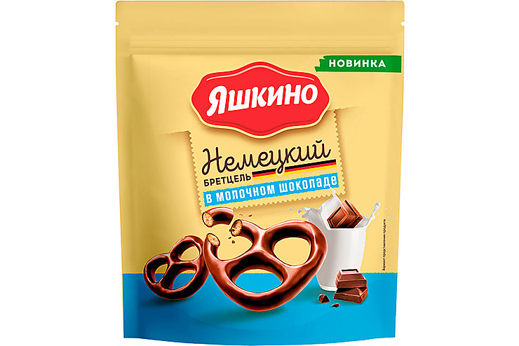 Состав продукта: крендельки (мука пшеничная в/с, сахар, жир кондитерский (рафинированные дезодорированные масла- пальмовое, подсолнечное, соевое; эмульгаторы- моно- и диглицериды жирных кислот, лецитины (соевый); ароматизатор, краситель каротины (бета-каротин), антиокислители- аскорбиновая кислота, концентрат смеси токоферолов), вода, разрыхлители- гидрокарбонат аммония, гидрокарбонат натрия; соль, сыворотка молочная сухая, соль морская, регулятор кислотности лимонная кислота); молочный шоколад (сахар, молоко сухое цельное, масло какао, какао тертое, сыворотка молочная сухая, эмульгаторы- Е322, Е476; ароматизатор). Возможно наличие следов орехов, арахиса, кунжута.