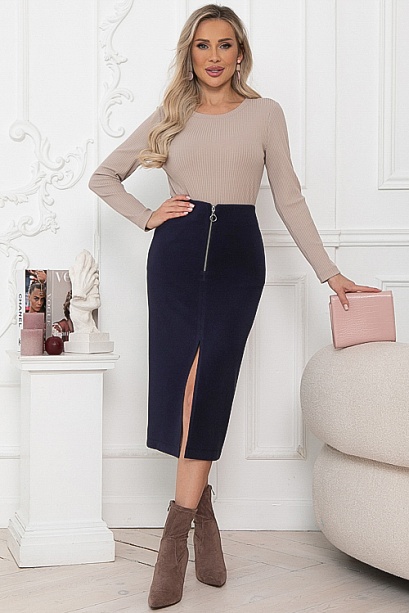 • Юбка из эластичного, плотного  хорошо держащего форму трикотажного полотна. По среднему шву переда функциональная молния и разрез.