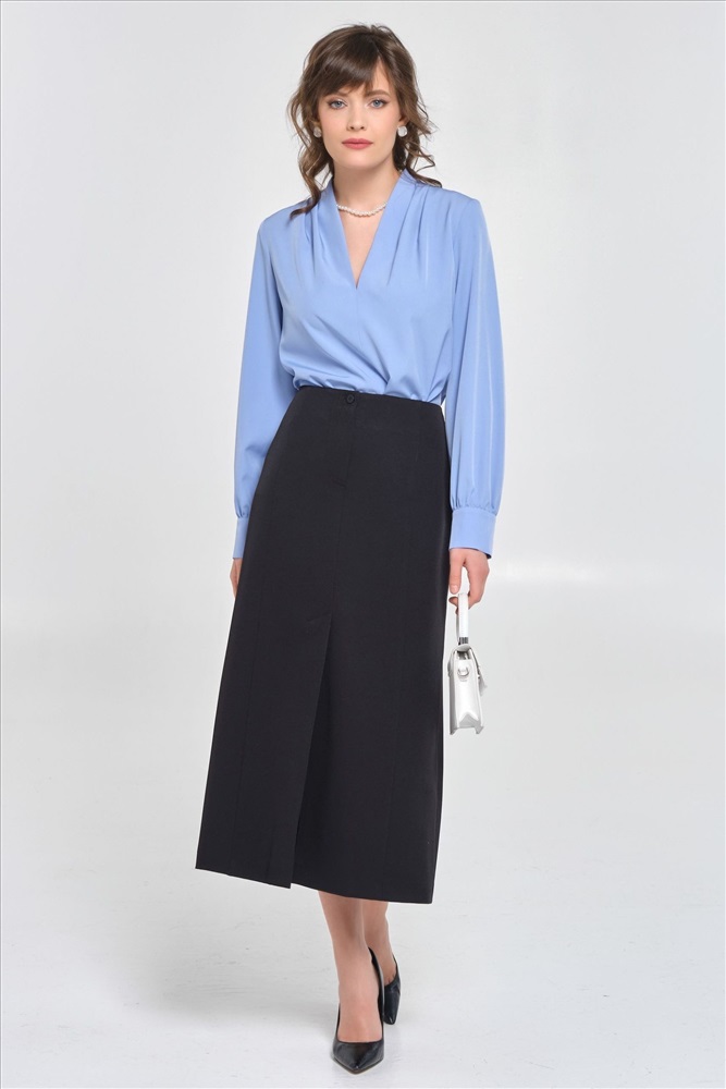 Юбка чёрная миди от фабрики Priz. Модель А-силуэта, со шлицами спереди и сзади, выполнена из текстильного полотна. На подкладе. Спереди рельефы, застежка на молнию и петлю с пуговицей. Комфорт и стиль на каждый день., Оттенок цвета может незначительно отличаться от фото., Ожидание отправки (рабочих дней): 7, Длина: 84 см., Размер модели: 44., Рост модели: 174 см., Состав:, Вискоза 50%, Полиэстер 50%, Тип ткани:, Текстиль