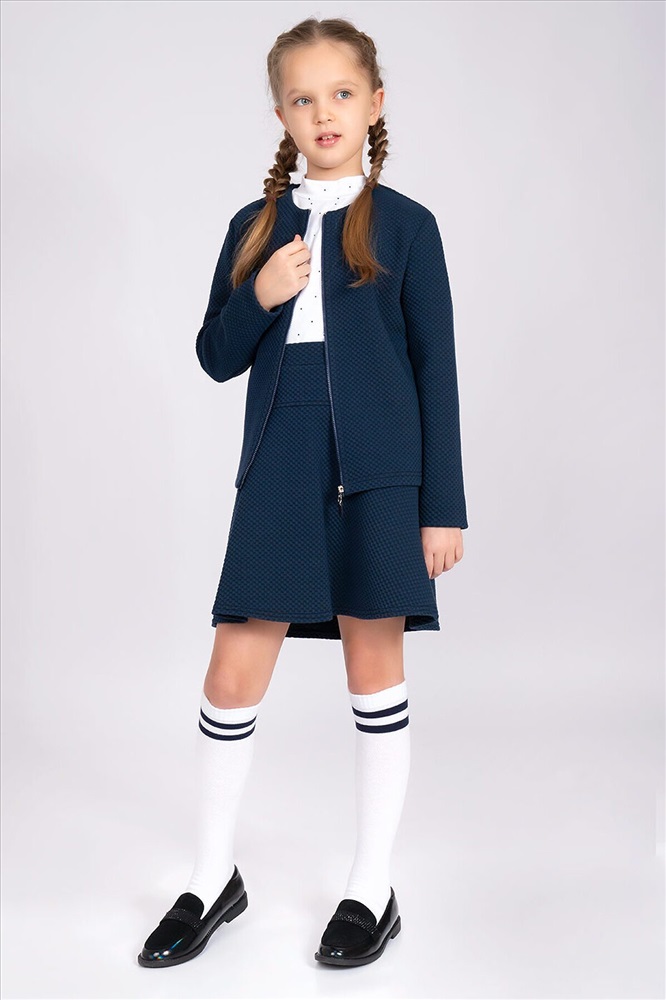 Юбка из фактурного капитона, хорошо держит форму. В поясе сзади удобная резинка. Состав: 58% Полиэстер, 40% Хлопок, 2% Эластан