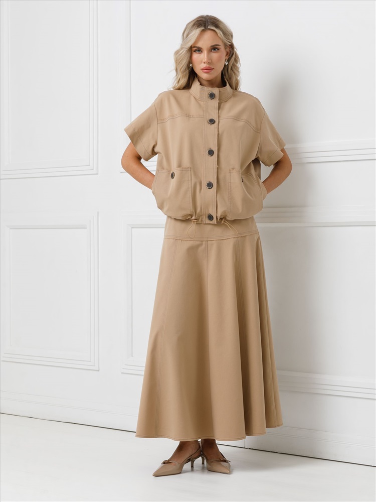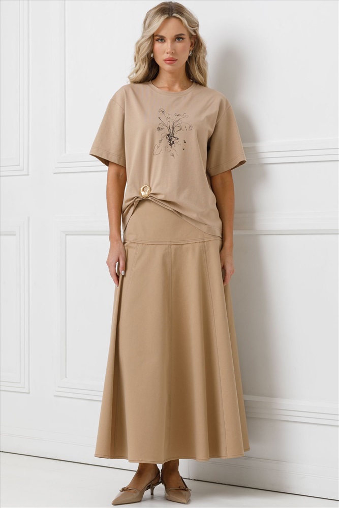 Юбка длинная расклёшенная от фабрики Priz, выполнена из текстильного полотна. Юбка без подклада, на широкой кокетке, без подклада. В левом боковом шве потайная застёжка молния. Юбка декорирована швами с открытыми срезами и отделочными строчками. Комфорт и стиль на каждый день., Оттенок цвета может незначительно отличаться от фото., Ожидание отправки (рабочих дней): 7, Длина: 42р - 94,5 см, 52р - 94,5 см., Размер модели: 44., Рост модели: 174 см., Состав:, Хлопок 72%, Полиэстер 26%, Эластан 2%, Тип ткани:, Текстиль