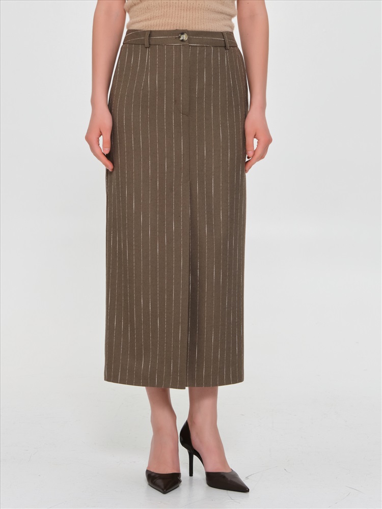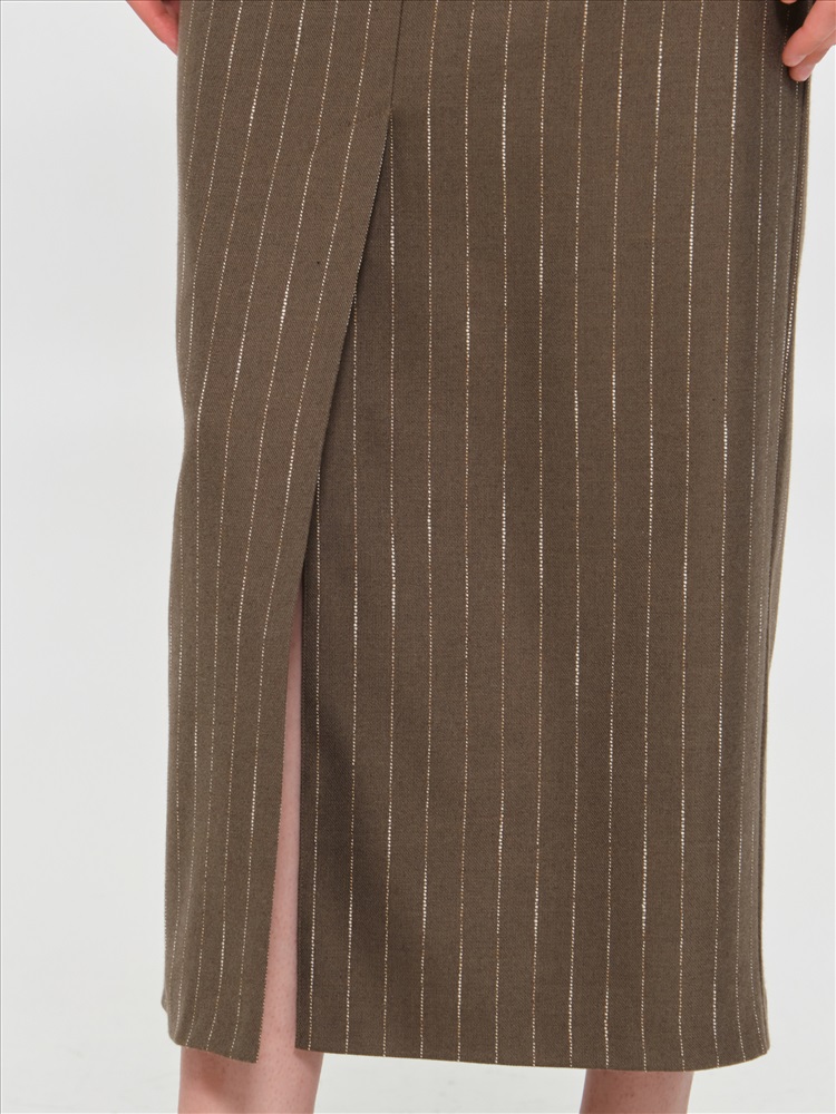 Юбка длинная в полоску от фабрики Priz. Модель прямого силуэта, на подкладе. Выполнена из текстильного полотна. Пояс подкройной, со шлёвками. Спинка со средним швом. Спереди карманы в подрезных бочках. Застёжка на молнию и пуговицу на поясе. В среднем шве переда обработана шлица. Комфорт и стиль на каждый день., Оттенок цвета и расположение рисунка могут незначительно отличаться от фото., Ожидание отправки (рабочих дней): 7, Размер модели: 44., Рост модели: 174 см., Состав:, Вискоза 68%, Полиэстер 30%, Эластан 2%, Тип ткани:, Текстиль
