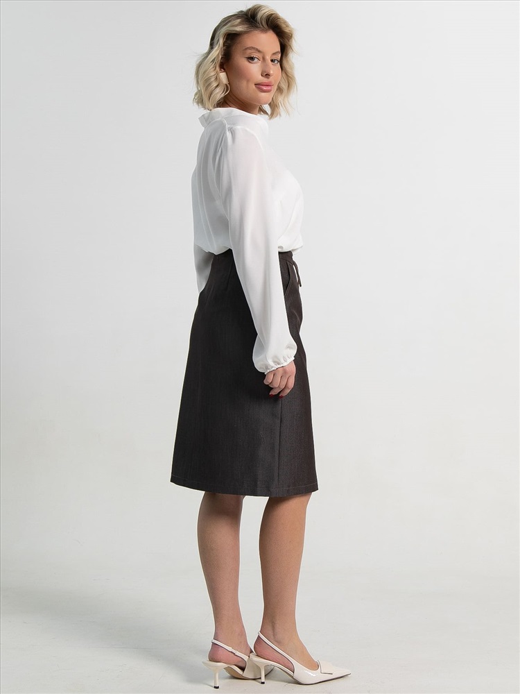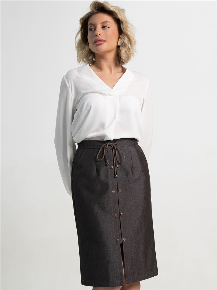 Материал: костюмный Цвет: Коричневый Принт: отсутствует Длина: миди Карманы: Есть Резинка в поясе: Нет Вид застежки: молния Тип посадки юбки: Средняя Пояс юбки: притачной Крой юбки: прямой Фасон юбки: Прямая Декоративные элементы: Завязка в поясе Длина готового изделия по боковому шву: 42-62 см, 44-63 см, 46-64 см, 48-66 см, 50-68 см, 52-68 см Стильная и практичная женская прямая юбка выполнена из костюмной ткани в однотонном коричневом цвете, идеально подходящая для весенне-осеннего гардероба. Модель оснащена застежкой-молнией для удобства и притачным поясом с вставленным шнурком, который можно регулировать для комфортной посадки. По переду расположены боковые карманы, добавляющие функциональности. По переду юбки проходит вертикальная вставка, закрепленная пуговицами (8 штук), что придает образу изящности и стильности. Эта универсальная модель легко сочетается с рубашками, водолазками или жакетами, позволяя создавать актуальные и элегантные образы на каждый день. Уход за изделием: Ручная стирка или стирка в машине при температуре до 30 °C, деликатный режим. Не использовать отбеливатели. Разрешена глажка при температуре до 110 °C. При глажке использовать специальную насадку на подошве утюга, гладить с паром. Не замачивать и не выжимать. Стирать изделие наизнанку, отдельно от других вещей. Комментарии к товару