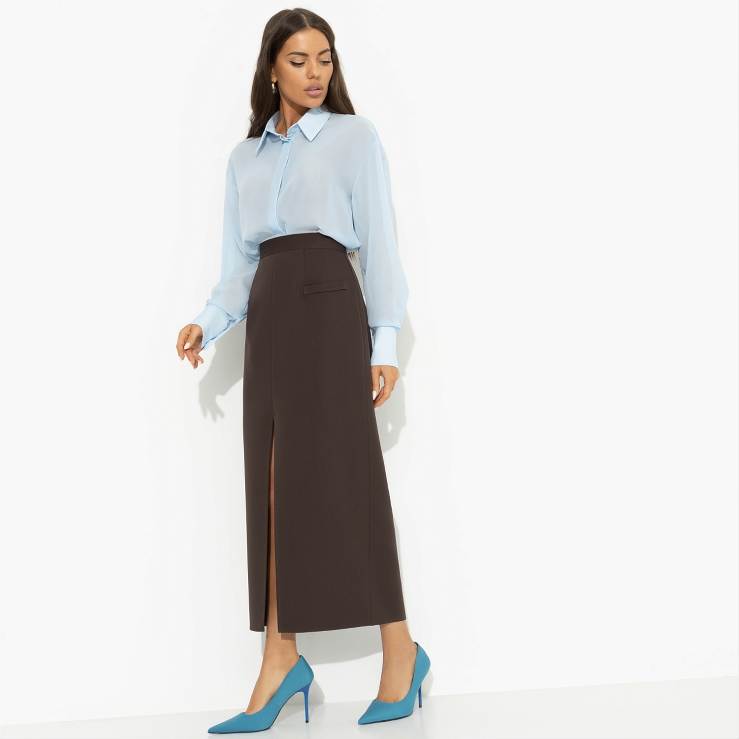 В роли руководителя ты не только не потеряла свою женственность, но и удвоила её. Потому что ничто не придет больше привлекательности образу, чем уверенный взгляд в будущее и деловая юбка CHARUTTI в элегантной длине. Юбка приталенного силуэта в длине миди. Есть разрез спереди. Посадка высокая, на талии. Имитация карманов. Изделие застегивается на скрытую молнию. Юбка с разрезом «Дерзкая элегантность (коричневая)» из ткани «Барби» предлагает уникальное сочетание стиля и функциональности, которое идеально подходит для тех, кто ценит качество и изысканность в каждой детали. Эта юбка прекрасно подойдет для корпоративных мероприятий, деловых встреч и повседневной офисной жизни, помогая создать образ, который будет вдохновлять доверие и уважение. Оптовая покупка этой модели — это не только выгодное вложение в гардероб, но и способ подчеркнуть свою приверженность к стилю и элегантности. Высокая посадка и разрез спереди добавляют изюминку, превращая каждое ваше появление в настоящую демонстрацию уверенности. Для тех, кто стремится к созданию гармоничного корпоративного стиля, юбка «Дерзкая элегантность» станет незаменимым элементом гардероба. Имитация карманов и скрытая молния делают её практичной и удобной в носке, а элегантная длина миди — идеальной для создания строгого, но женственного образа. Оптовое приобретение этой юбки — это возможность для владельцев модных бутиков и корпоративных клиентов предложить своим клиентам или сотрудникам продукт высокого качества, который подчеркнет их статус и вкус. Сочетание с другими элементами делового гардероба открывает безграничные возможности для создания уникальных и стильных ансамблей. Если вы ищете способ предложить своим клиентам или сотрудникам продукт, который станет настоящим символом уверенности и стиля, оптовая покупка юбки «Дерзкая элегантность (коричневая)» станет вашим лучшим решением. Ткань «Барби» отличается своей мягкостью и долговечностью, обеспечивая максимальный комфорт в течение всего дня. Приталенный силуэт и разрез спереди придают изделию дерзкий характер, который будет выделять вас из толпы. Эта юбка — не просто элемент одежды, это — выражение вашей индивидуальности и стремления к совершенству. Комментарии к товару