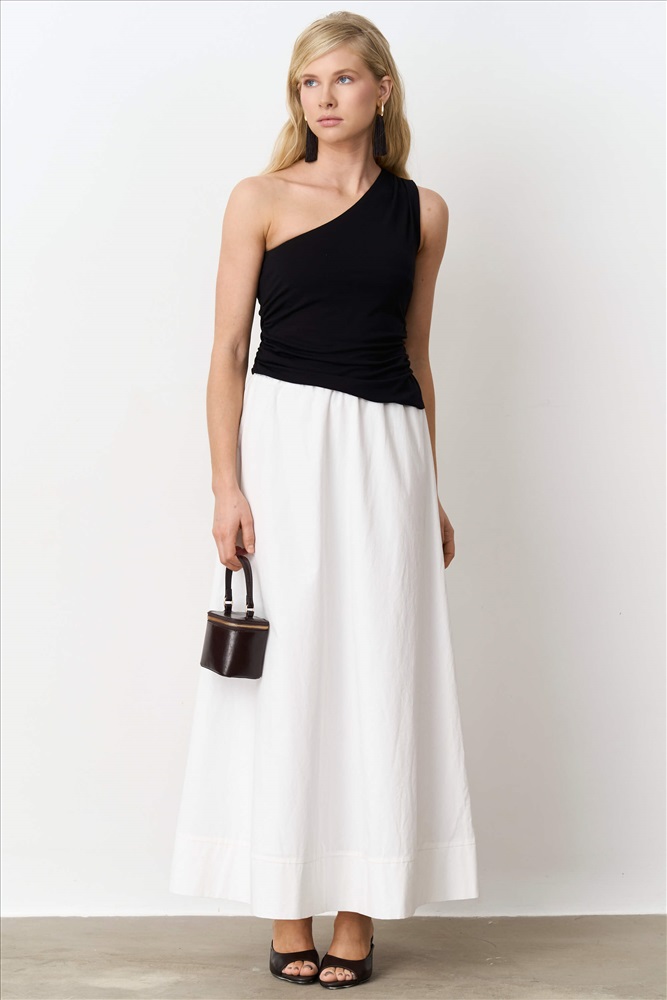 Состав: 100% Хлопок Длина: 91 см. Цветовая гамма: Молочный Силуэт: А-силуэт Принт: Нет Коллекция: Лето #4 Романтичная юбка из фактурного хлопка длины макси. Модель свободная А-силуэта с резинкой по талии для комфортной посадки. По низу изделия отрезная декоративная манжета. Комментарии к товару