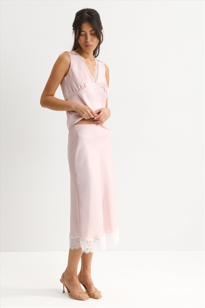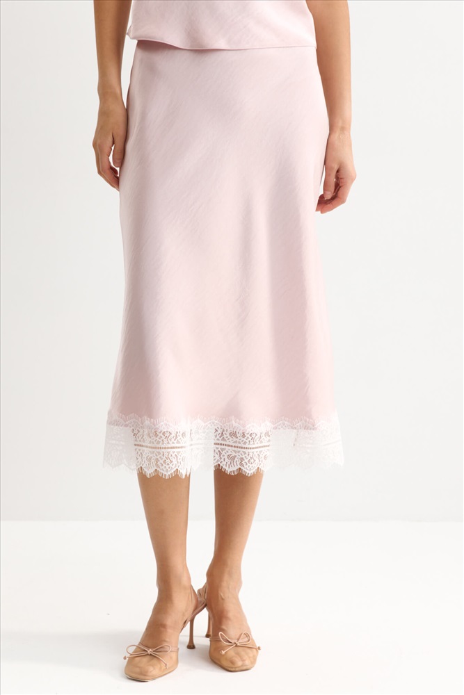 Состав: 100% ПЭ Длина: 80 см. Цветовая гамма: Розовый Силуэт: Полуприлегающий Принт: Нет Коллекция: Лето #4 Юбка из мягкого крэш-атласа актуальной длины с кружевом. Модель полуприлегающего силуэта, выкроенная по косой. Изделие на обтачке с внутренней мягкой резиной. Низ изделия оформлен французским кружевом. Комментарии к товару