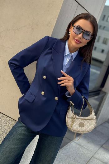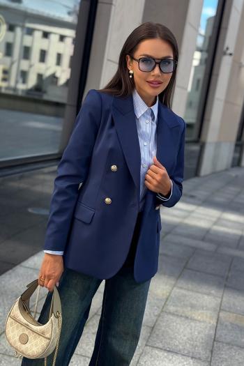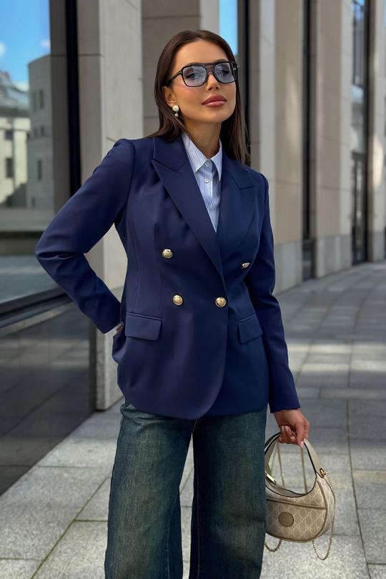 Каждая женщина знает: приталенный женский жакет способен выгодно подчеркнуть фигуру, добавить изящества и уверенности в себе. Синий цвет – это классика, которая никогда не выходит из моды. Такой жакет уместен как в офисе, так и на деловой встрече, на прогулке по городу или в вечернем образе. Жакет женский, полуприлегающего силуэта, выполнен из костюмной ткани, на притачной подкладке, с двубортной застежкой на 2 петли и 4 декоративные пуговицы (размер и цвет фурнитуры может незначительно отличаться от фото), для повседневной носки.