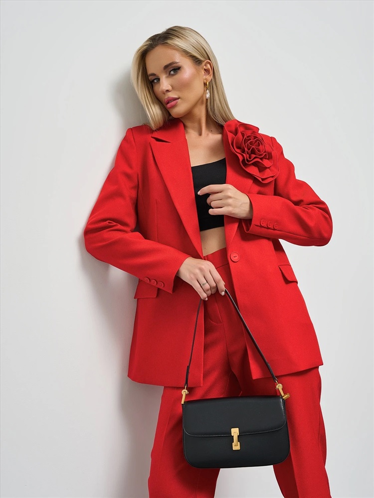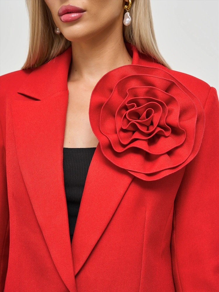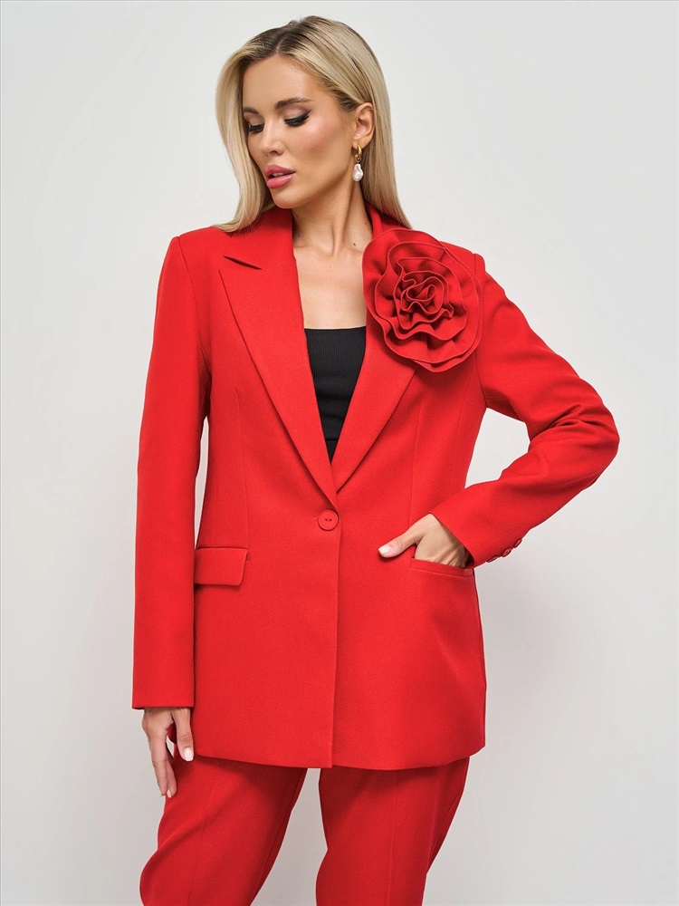 Воротник пиджачного типа. Длинный двухшовный рукав. Спинка со средним швом. По переду изделия прорезные карманы с клапаном. Брошь идет в комплекте. В комплект можно приобрести брюки арт. ШЮ168-11. Комментарии к товару