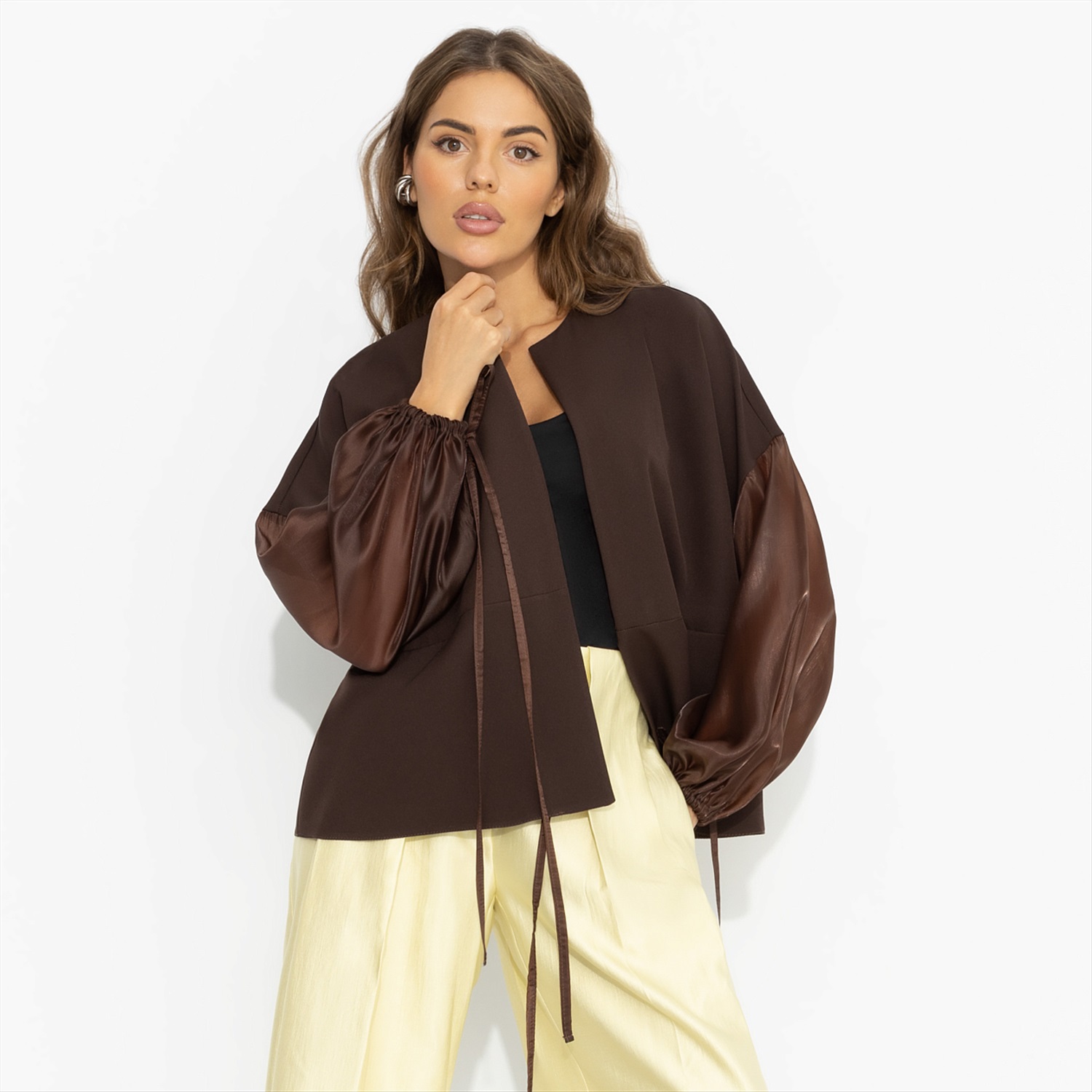 Ей нужен был герой – и она стала им сама. Шаг вперёд, выпрямленная спина, спокойная сила в каждом движении. Образ с жакетом от ЧАРУТТИ звучит как личная победа, как тихий манифест внутренней смелости. Плотная ткань формирует эффектный силуэт, полупрозрачные рукава из органзы добавляют драматичной лёгкости. Акцентная линия талии усиливает ощущение собранности и характера. Образ для тех, кто привык превосходить ожидания. Комментарии к товару