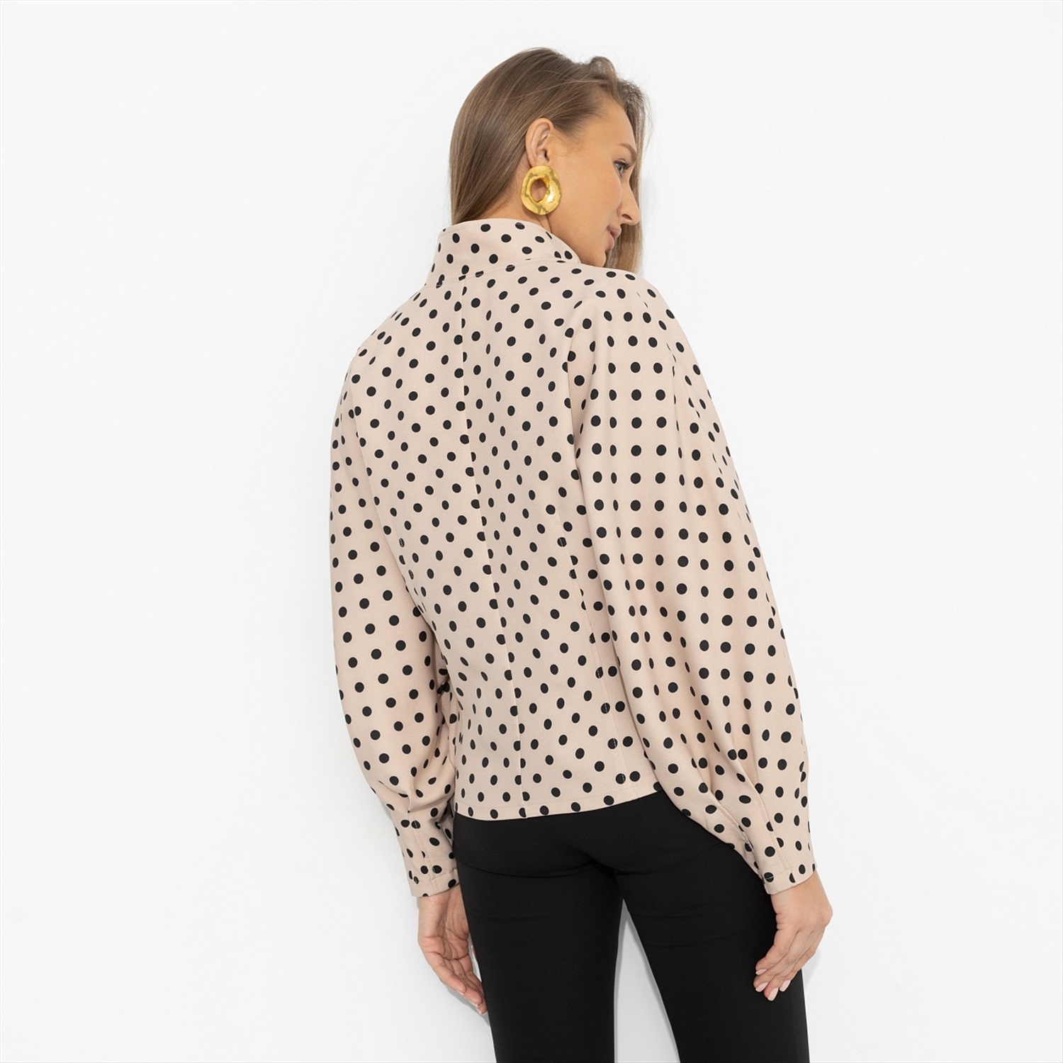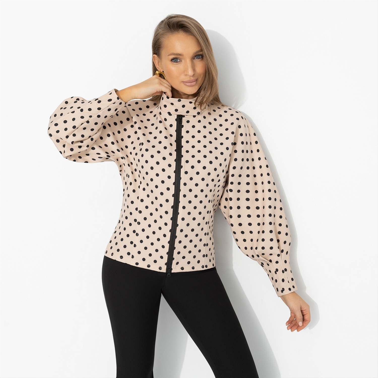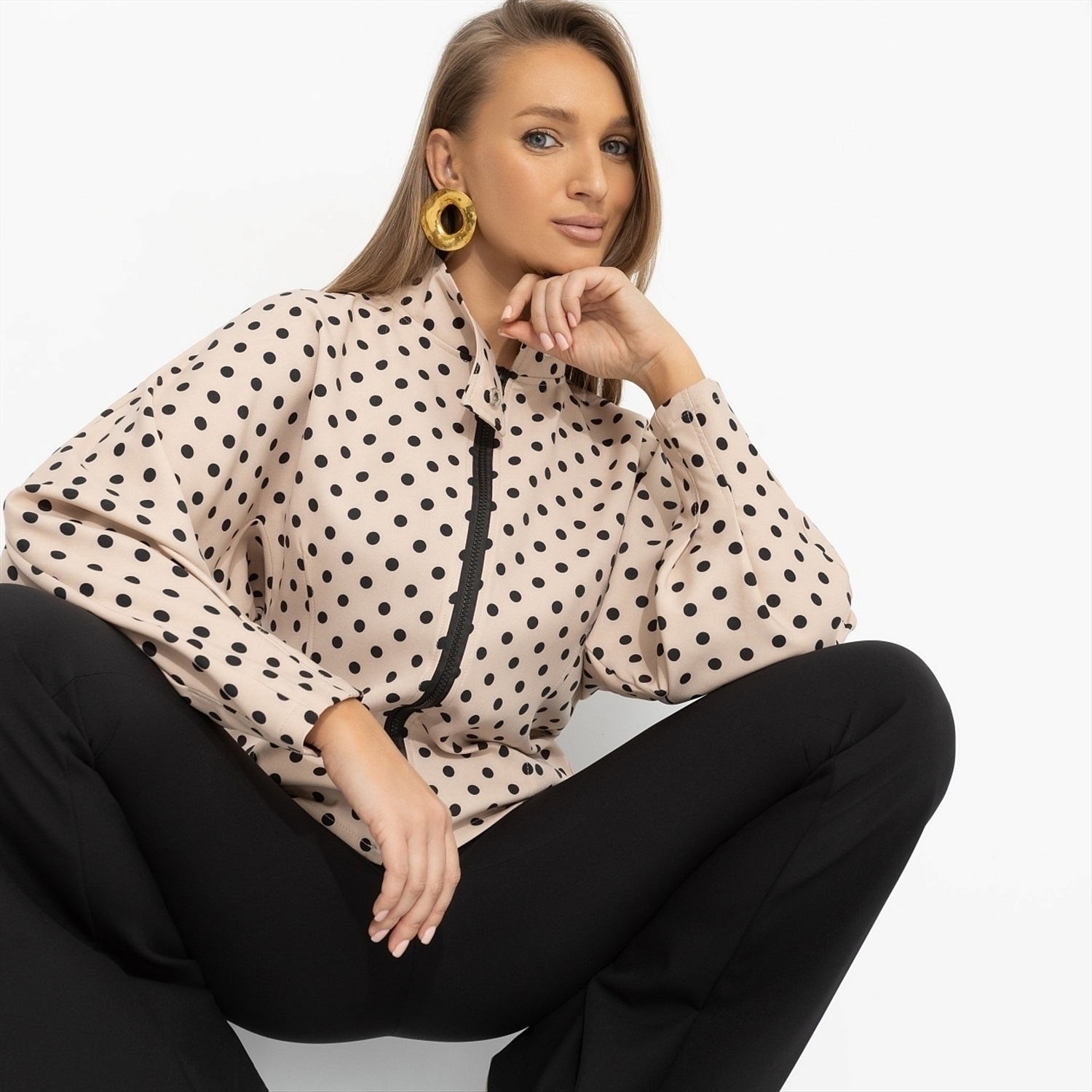 Она знала: её сильная сторона – не громкость, а стиль. Жакет в контрастный горох сначала кажется игривым, но дизайнерские рукава добавляют характер и драму. Один жест – и акценты расставлены. В нём можно улыбаться мягко, а решения принимать жёстко. И пусть гадают, что именно делает вас такой уверенной.