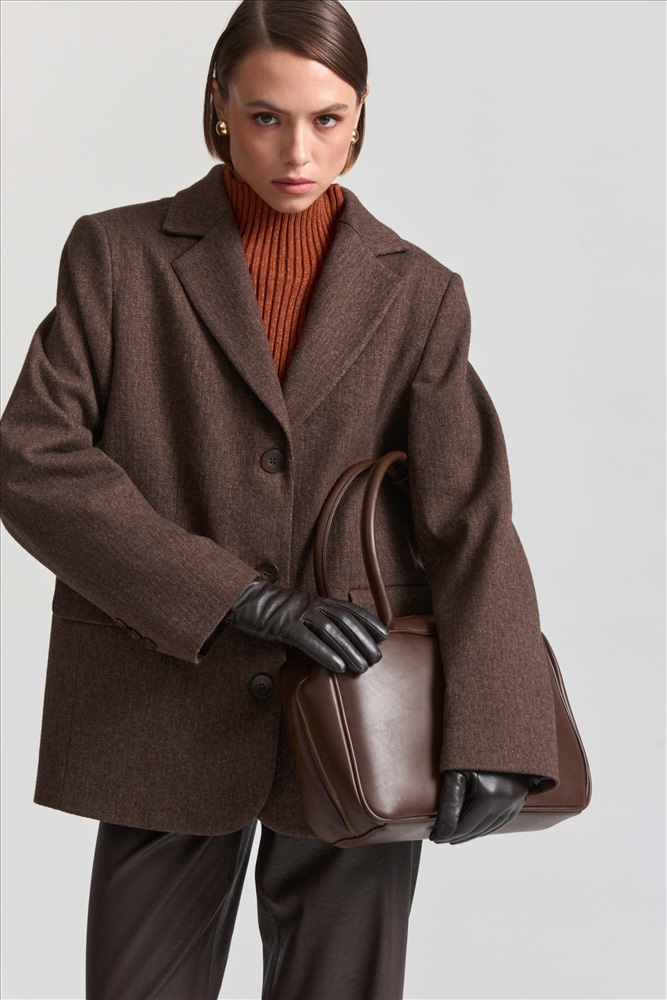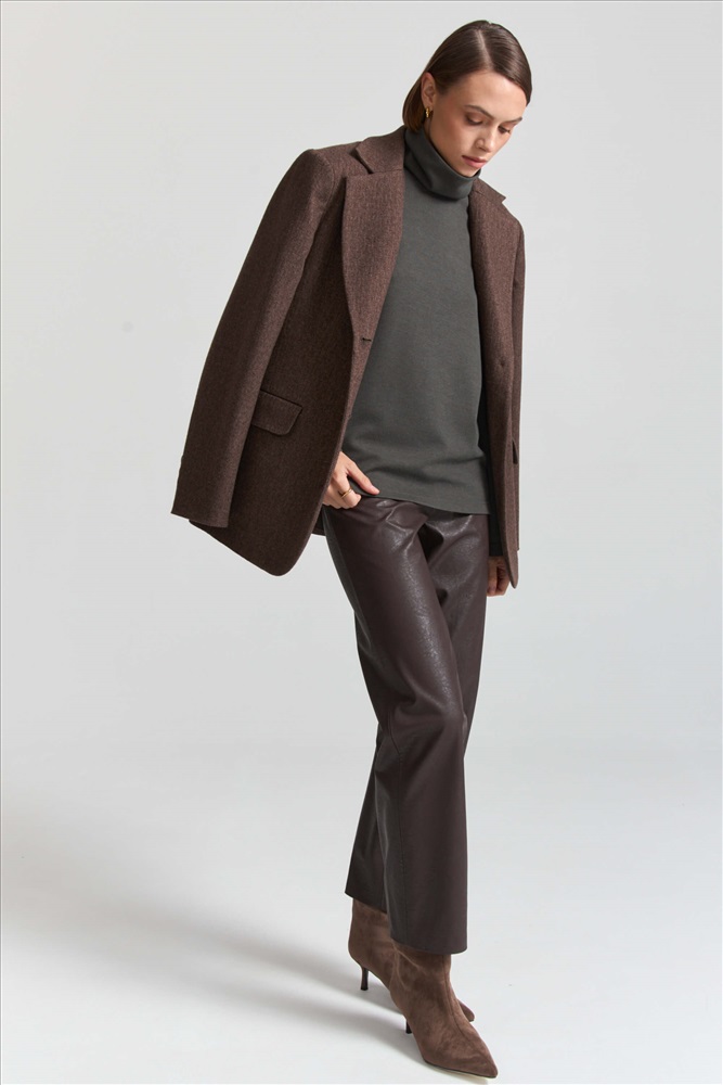 Состав: 55% Вискоза 35% ПЭ 10% Шерсть Длина: 75 см. (42 размер), 78 см. (52 размер) Цветовая гамма: Шоколад Силуэт: Свободный Принт: Нет Коллекция: AUTUMN #4 Облегченное пальто-пиджак на подкладке из поливискозы. Однобортная прямая свободная модель с английским воротником. Застежка на петли и пуговицы, прорезные карманы с накладными клапанами. Комментарии к товару