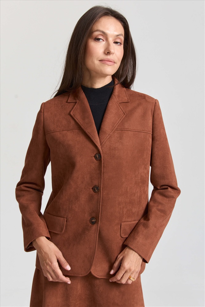 Состав: 75% Полиэстер 20% Вискоза 5% Эластан Длина: 70 см. (42 размер), 73 см. (52 размер) Цветовая гамма: Корица Силуэт: Прямой Принт: Нет Коллекция: AUTUMN #4 Трендовый жакет из эко-замши. Модель прямая, свободная с небольшим английским воротником. Кокетка на полочке и спинке, шлица на спинке и на рукавах. Прорезные карманы. Комментарии к товару