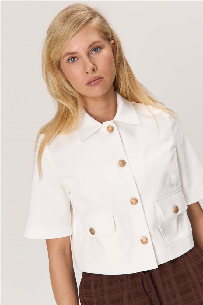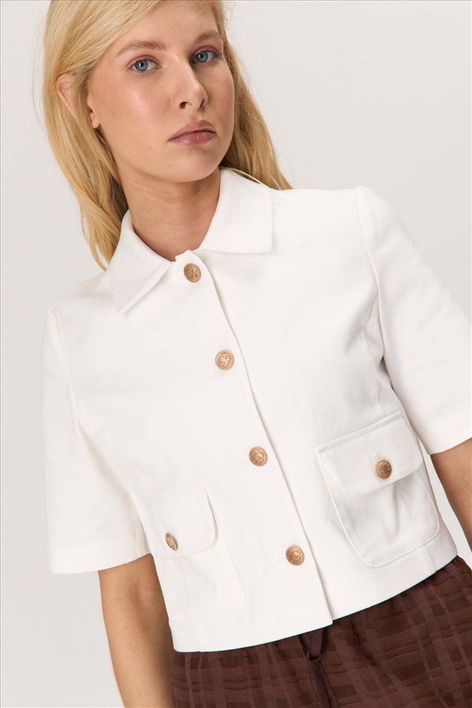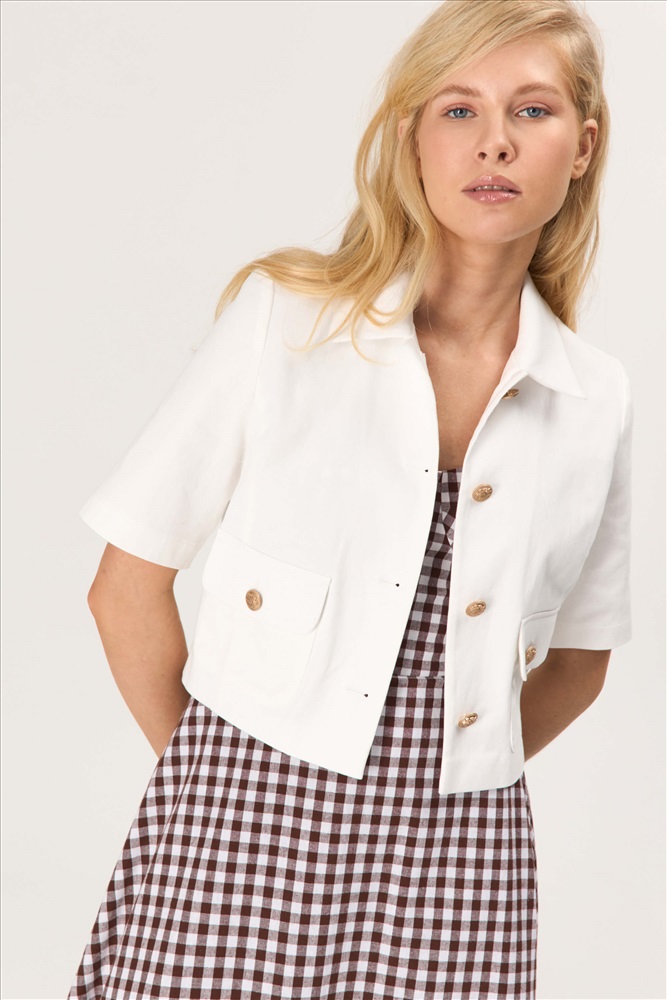 Состав: 95% Хлопок 5% Эластан Длина: 50 см. (42 размер), 55 см. (52 размер) Цветовая гамма: Молочный Силуэт: Свободный Принт: Нет Коллекция: Лето #5 Укороченный жакет из денима в молочном оттенке с акцентными пуговицами. Модель свободного силуэта с отложным воротником и застежкой на акцентные, металлические пуговицы. По переду карманы с клапанами и пуговицей. Рукав втачной. Комментарии к товару