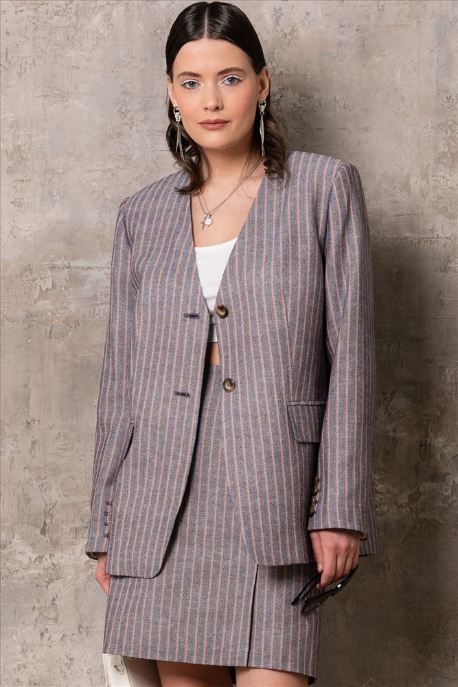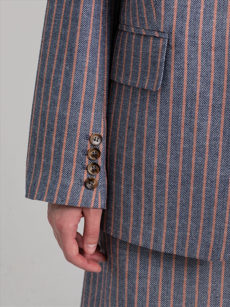 Жакет в полоску от бренда Priz. Модель прямого силуэта, с рельефами, на хлопковом подкладе, выполнен из текстильного полотна сине-серого оттенка. Спереди прорезные карманы в рамку с клапаном и центральная застёжка на петли и пуговицы. Край борта закруглён. Вырез горловины V-образный. В среднем шве спинки обработана шлица. В переднем шве рукава отлетная шлица с декоративными петлями и пуговицами. Идеальный выбор для Вашего стильного гардероба., Оттенок цвета и расположение рисунка могут незначительно отличаться от фото., Ожидание отправки (рабочих дней): 7, Длина: в росте 164: 42 р-ре - 73 см; 54 р-ре - 74 см., Размер модели: 44., Рост модели: 174 см., Состав:, Хлопок 62%, Полиэстер 30%, Лен 8%, Тип ткани:, Текстиль