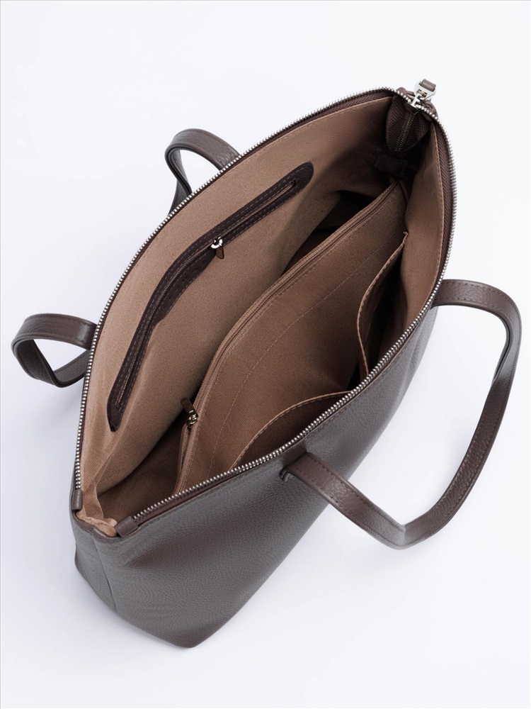 Внутри сумки перегородка на молнии для удобного разделения пространства, а также карман на молнии для хранения мелких предметов (паспорт и т.п.) и два открытых кармашка для смартфона или других вещей.