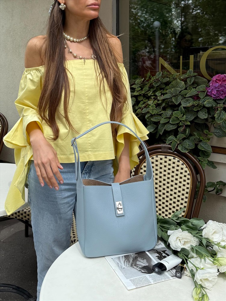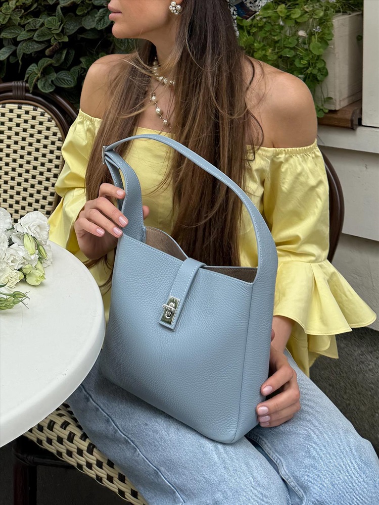 Этот презентабельный аксессуар выполнен из кожи на подкладке из бархатистой микрофибры. Эту сумочку выбирают женщины, предпочитающие качество не только товаров, но и материалов. Конечно, такая сумка на плечо стоит дороже, чем текстильный шопер. Но его стоимость оправдана. Натуральная кожа придает сумке женской для офиса особый шик и шарм.