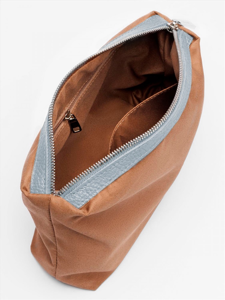 Внутри: текстильная косметичка на молнии, внутри которой вместительный карман на молнии и один открытый кармашек.