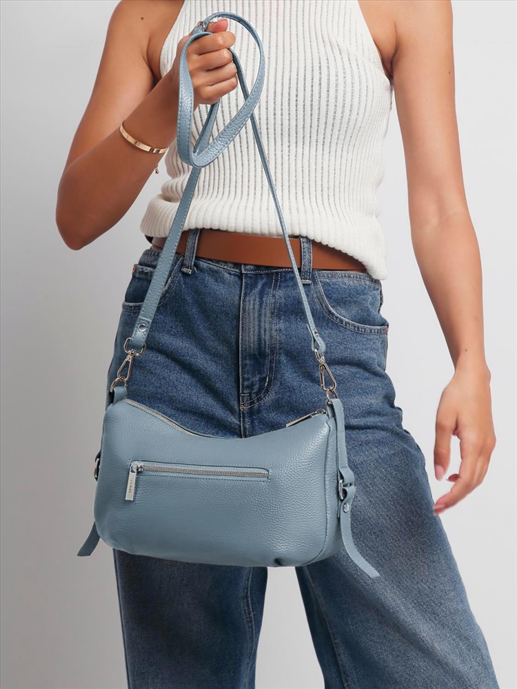 Описание 17 см x  29 см x 8 cm (высота x длина  x ширина ) Стильная, одновременно вместительная и компактная сумка кросс-боди из натуральной кожи , носится через плечо или на плече. Внутри сумки карман на молнии, открытый карман для смартфона. Снаружи на задней стенке вместительный карман на молниях. Ремень съёмный, регулируемый. Длина max 130 cm