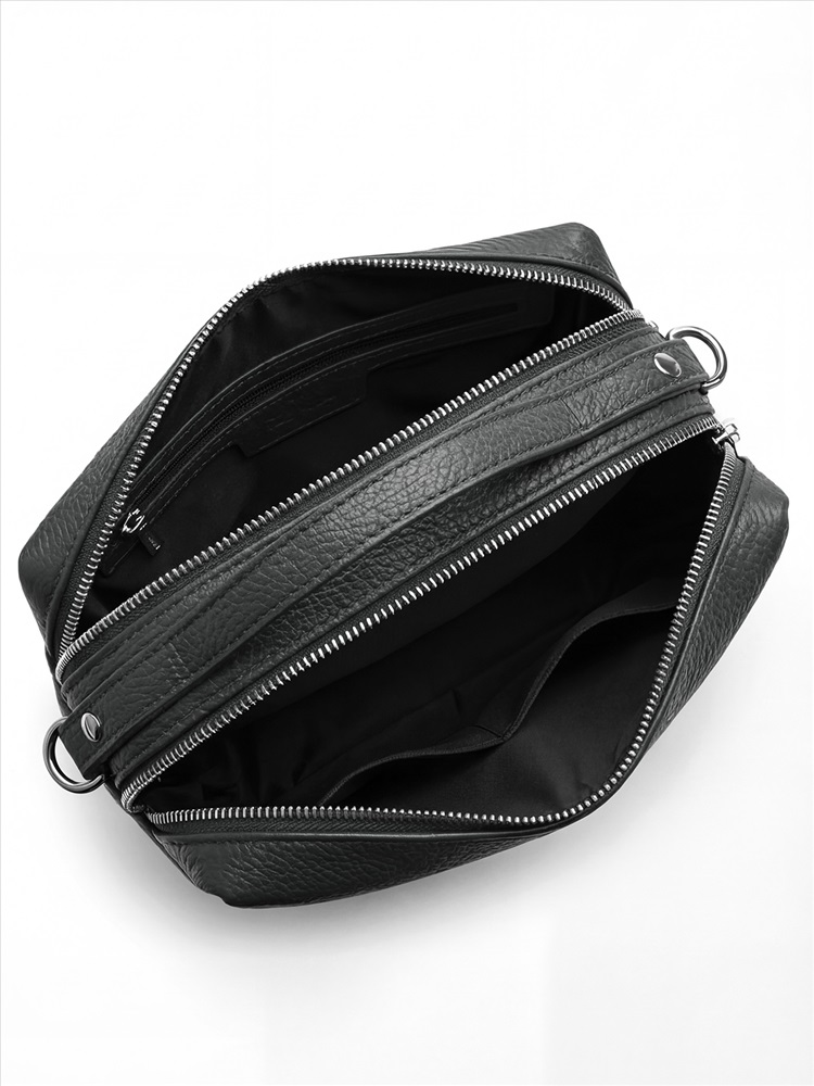 В сумочке два отделения, каждое из которых закрывается на молнию.