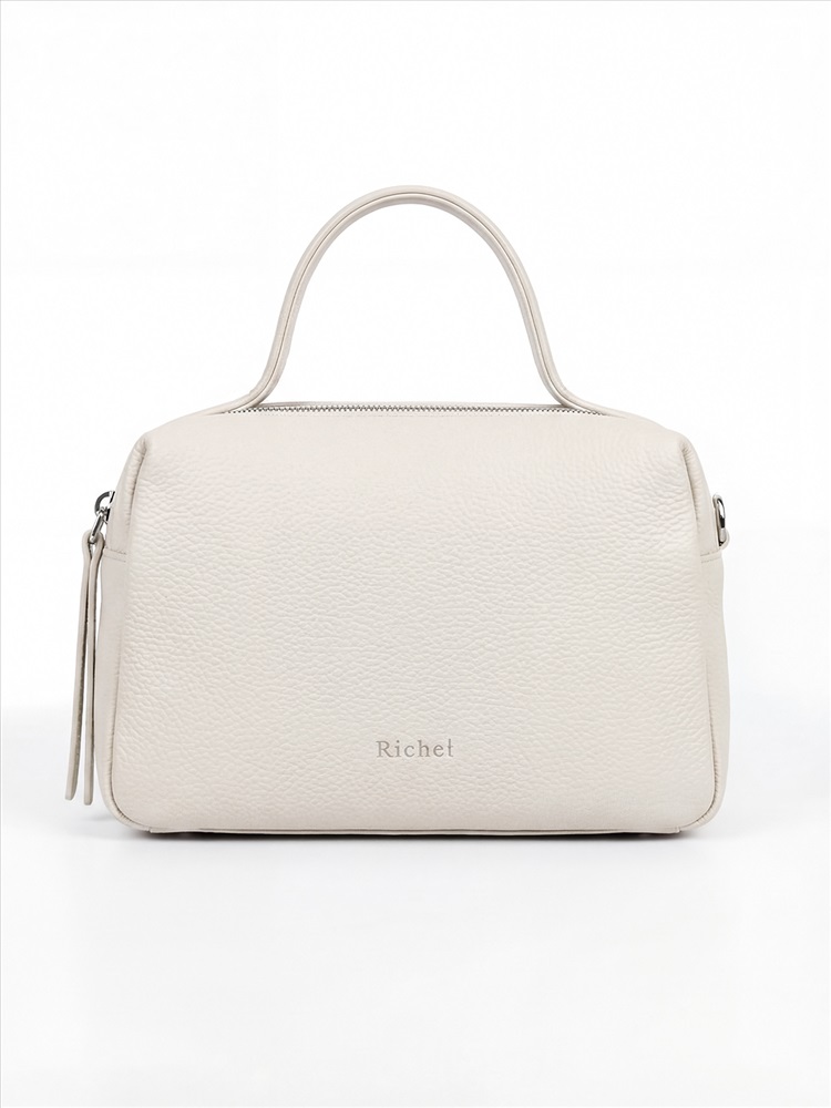 Габариты: 20x25x11 20 см x 25 см x 11 cm Элегантная сумочка, носится в руке и на плече на длинном ремне. Максимальная длина регулируемого ремня с карабинами 125 см Высота ручки 12 см. В сумочке два отделения, каждое из которых закрывается на молнию. Внутри сумочки карман для документов на молнии, два открытых кармана для мелочей и/или телефона и карманчик для авторучки. На задней стенке расположен вместительный карман на молнии. Комментарии к товару
