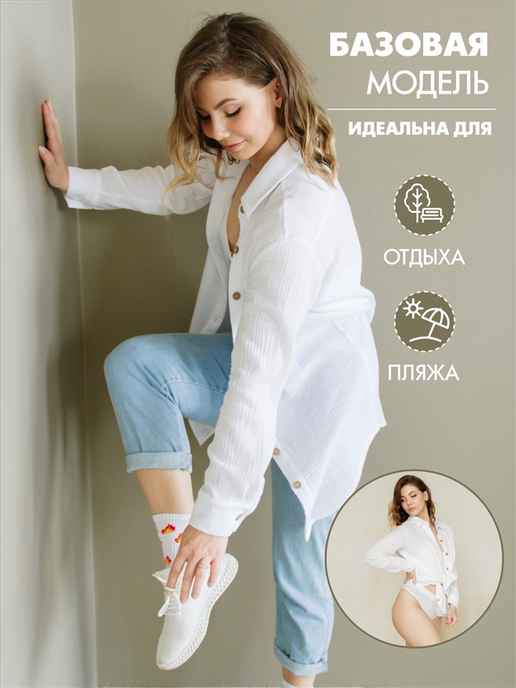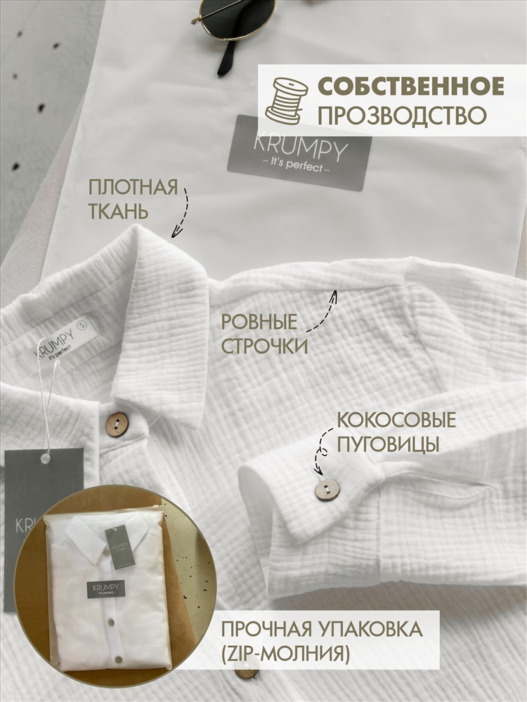 Вид изделия: Рубашка; Пол: Женский; Производитель: KRUMPY; Сезон: Всесезонные; Тип ткани: Хлопок; Цвет: Белый; Состав: 100% хлопок