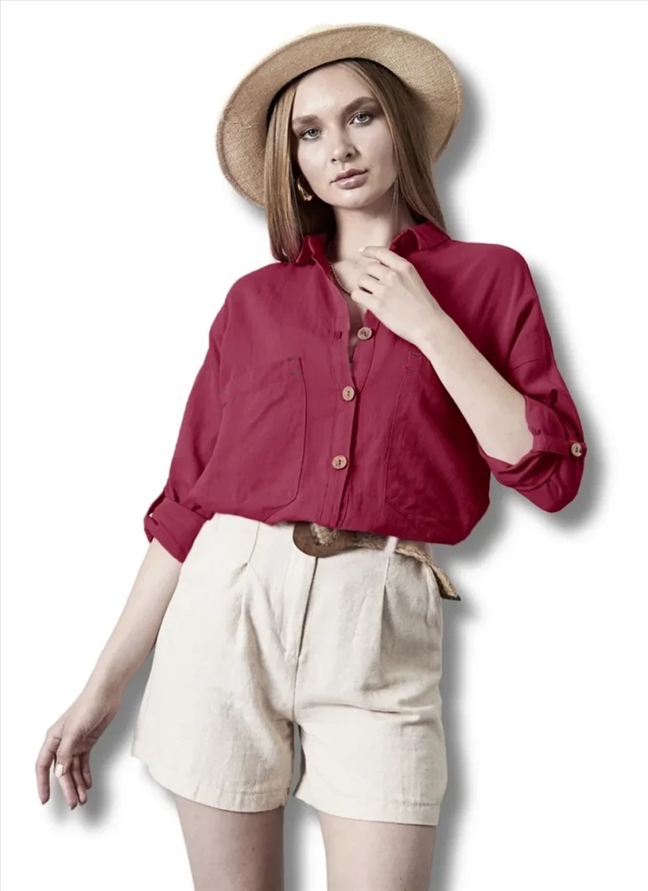 Женская рубашка из хлопка и кетена представляет собой универсальный элемент гардероба, сочетающий в себе комфорт и стиль. Она украшена накладными карманами спереди, которые добавляют функциональности и оригинальности дизайну. Классический воротник подчеркивает элегантность изделия, а длинные рукава, которые можно легко закатать, обеспечивают удобство и адаптацию к различным ситуациям. Отделка из пуговиц придает рубашке аккуратный вид и позволяет регулировать посадку.