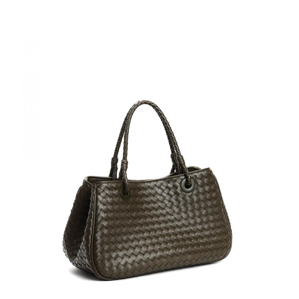 Материал: кожа Размер: средний Цвет: хаки Цвет фурнитуры: золотой Стильная сумка премиальной серии MIRONPAN выполнена из натуральной гладкой кожи декорирована эффектным плетением, станет роскошным дополнением образа. Прекрасно держит форму. Основное отделение закрывается на магнитную кнопку. Внутри 2 отдела, разделенных средником с карманом на молнии , на внутренней боковой стенке есть карман на молнии. В комплекте съемный плечевой ремень, шириной 1,5 . Цвет фурнитуры - золотой. Вес -600 Размер: 30 х 19 х 14 см (длина х высота х ширина ) Комментарии к товару