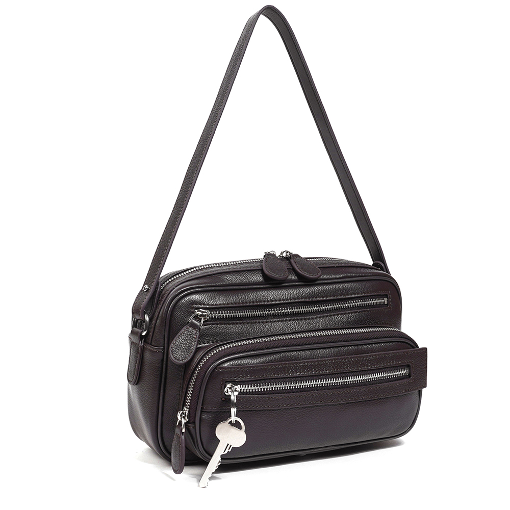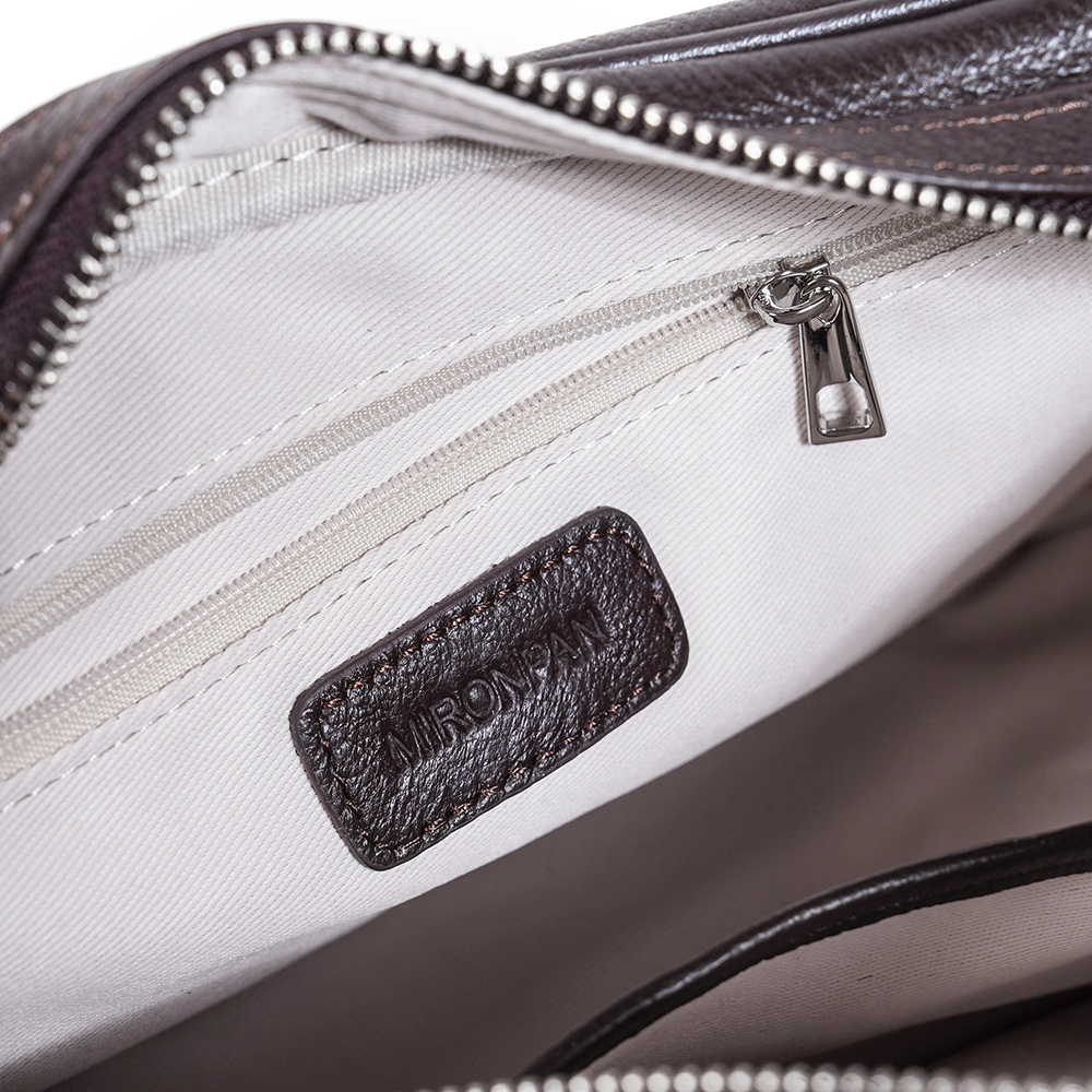 Материал: Кожа Размер: Средний Цвет: Коричневый Цвет фурнитуры: Серебряный Стильная сумка на плечо MIRONPAN выполнена из натуральной зернистой кожи. Основное отделение закрывается на молнию с кожаным поводком. Внутри 2 кармана для мелочей: открытый и на молнии. На тыльной стороне расположен карман быстрого доступа на кнопке. Модная деталь – вместительный накладной карман на молнии с акцентным поводком в виде ключа на лицевой стороне изделия. В комплекте есть 2 съемных плечевых ремня: длина первого - 63 см, ширина - 2 см; второй регулируется по длине, ширина - 2 см. Подкладка хлопок Цвет фурнитуры - серебро. Вес 700 Размер: 27 x 16 x 7 cm ( длина x высота x ширина) Комментарии к товару
