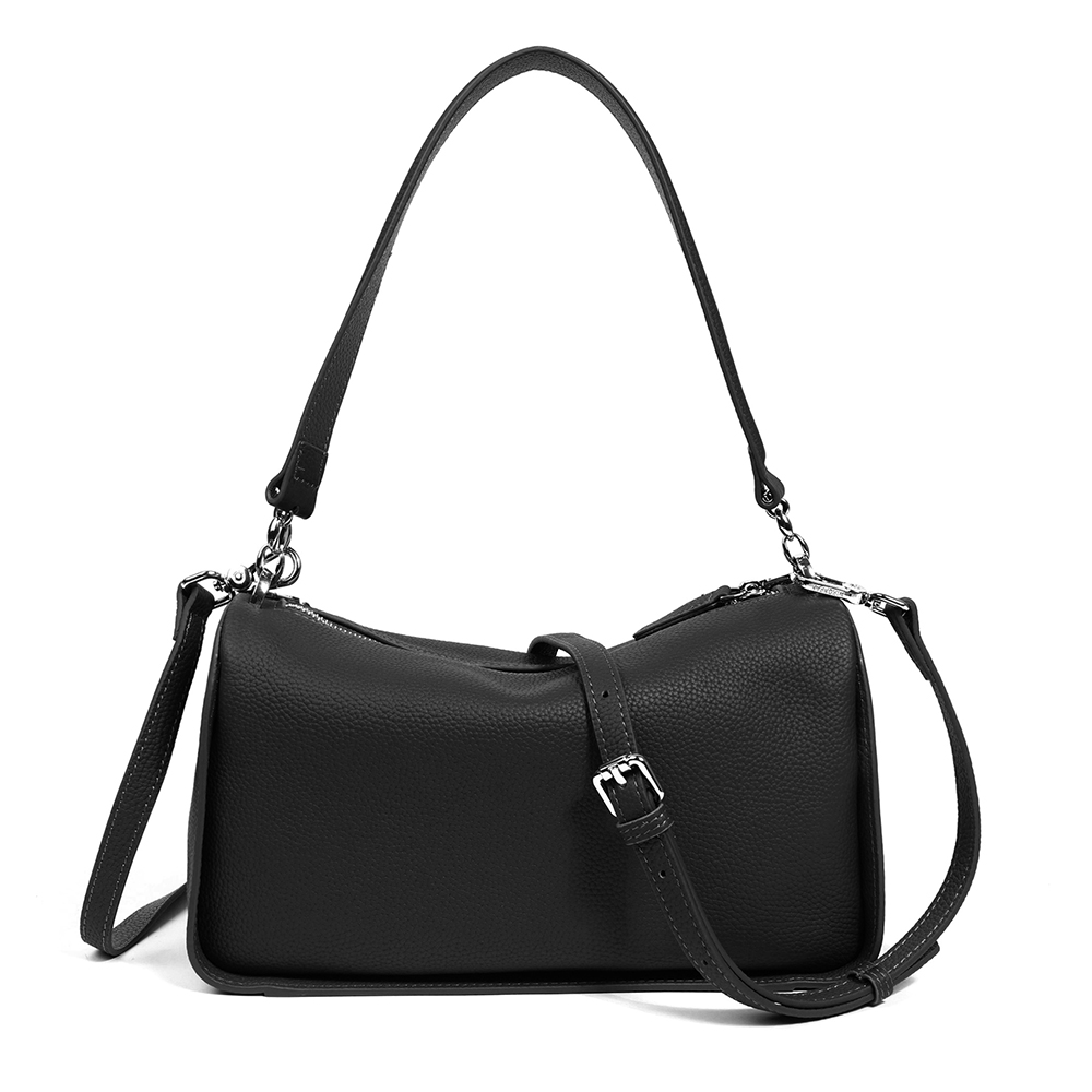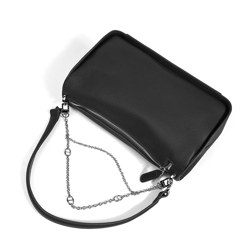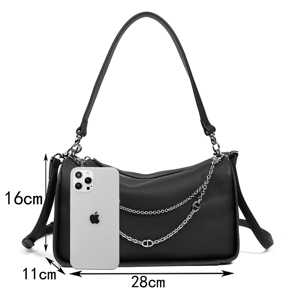 Материал: Кожа Размер: Средний Цвет: Графит Цвет фурнитуры: Серебряный Стильная сумка MIRONPAN выполнена из натуральной зернистой кожи. Сумка закрывается на молнию с кожаным поводком и лицевая сторона декорирована съёмной цепочкой. Внутри 2 боковых кармана для мелочей: открытый на молнии. В комплекте два съёмных ремня шириной 2 см , позволяют комфортно носить аксессуар на плече и в руке. Цвет фурнитуры - серебро. Размер 28 х 16 х 11 (длина х высота х ширина) Вес 560 Комментарии к товару