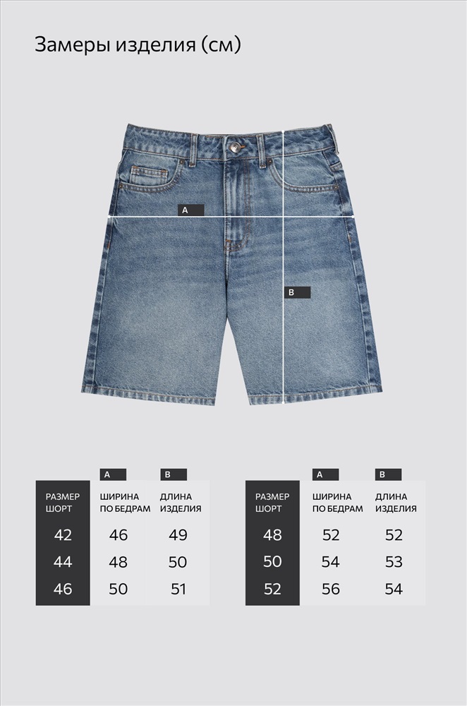Размер 48: длина внеш.шва:52 см; длина внутр.шва:22 см; ширина по бёдрам:52 см; ширина по талии:41 см.