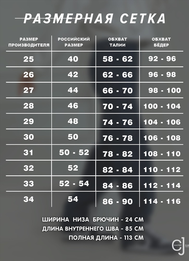 При выборе размера рекомендуем ориентироваться на "таблицу размеров"