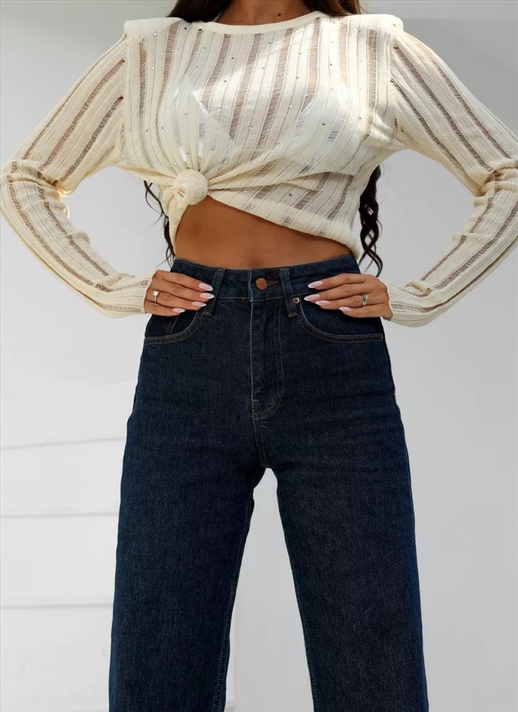 Для стильного и легкого образа носите эти джинсы с заправленной рубашкой или топом — визуально подчеркнете талию и создадите современный силуэт.