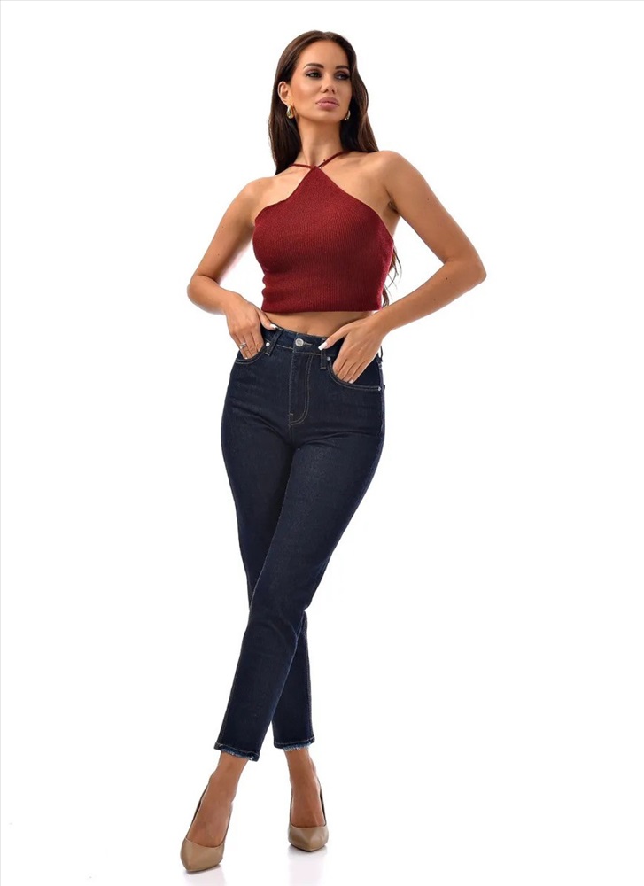 Тёмно-синий оттенок, эффект потертости и укороченный крой делают их идеальными как для офиса, так и для прогулки.