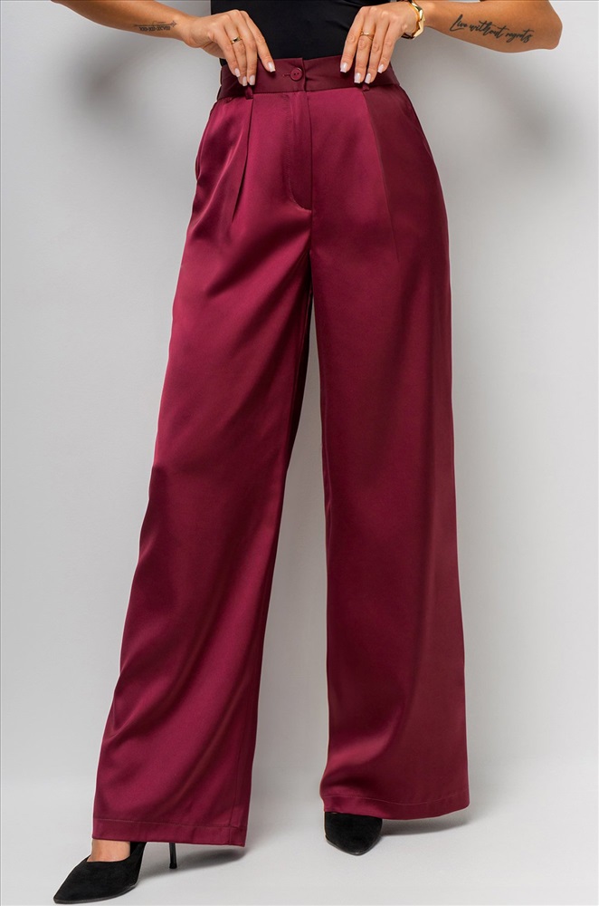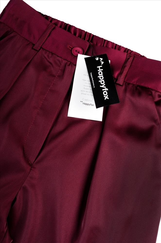 Классические женские брюки оттенка бургунди созданы для того, чтобы превратить каждый день в произведение искусства. Широкие брюки оттенка марсала выполнены из японского шелка. Его мягкость и легкость подарит невероятный комфорт и изысканность. За счет особого плетения поверхность блестящая, мягкие струящиеся складки красиво переливаются на свету. Идеальный крой с высокой посадкой визуально сделает ноги стройнее. Классический пояс и небольшие складки-защипы спереди эффектно подчёркивают талию. Боковые карманы добавляют функциональности. Штаны дополнены удобной застежкой на пуговицу и на молнию. Однотонные шелковые брюки с завышенной талией будут уместны как в офисной атмосфере, так и на вечерних мероприятиях. Демисезонные красные штаны идеальны для работы в офисе и прекрасно впишутся дресс-код. Брюки бордового цвета подойдут для романтичных осенних образов. Модель Анфиса, ее рост 170, параметры: 88-67-97. На ней размер 44.